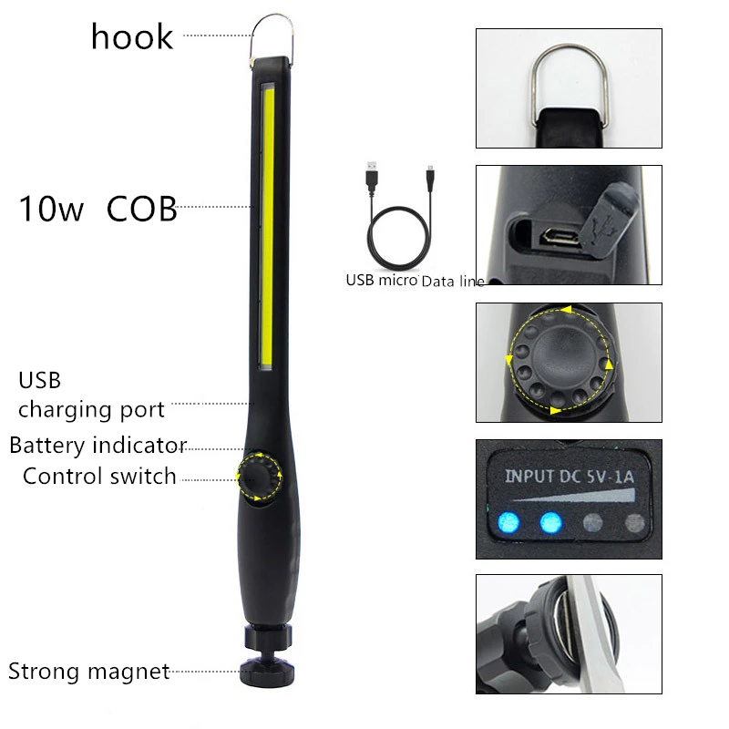 Светодиодные рабочие фонари 3200 мА ч, беспроводные Переносные Магнитные рабочие фонари COB, рабочие фонари для осмотра автомобилей, дома, гаража, аварийных ситуаций