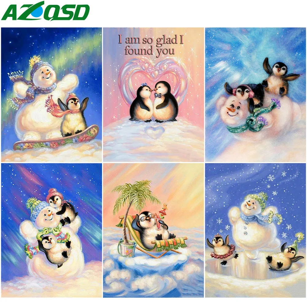 AZQSD DIY алмазная живопись Снеговик зима вышивка крестиком Алмазная вышивка пейзаж мозаика украшение для дома