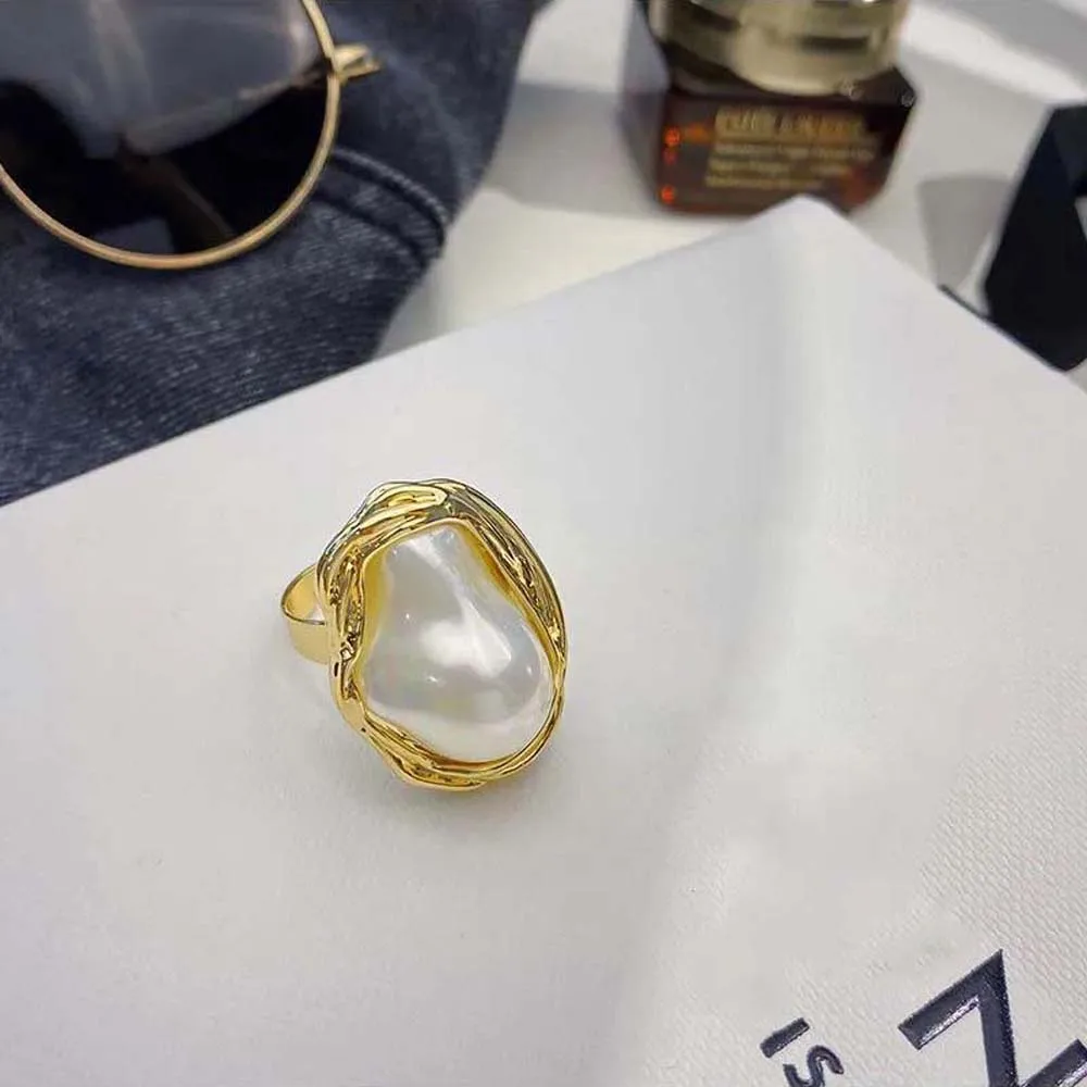 Женское кольцо с большим барочным жемчугом, регулируемое кольцо, юв...
