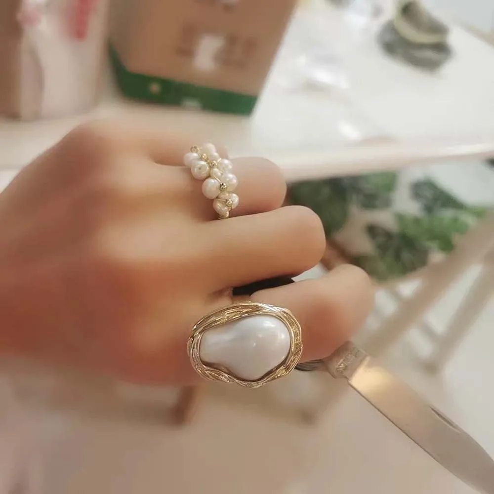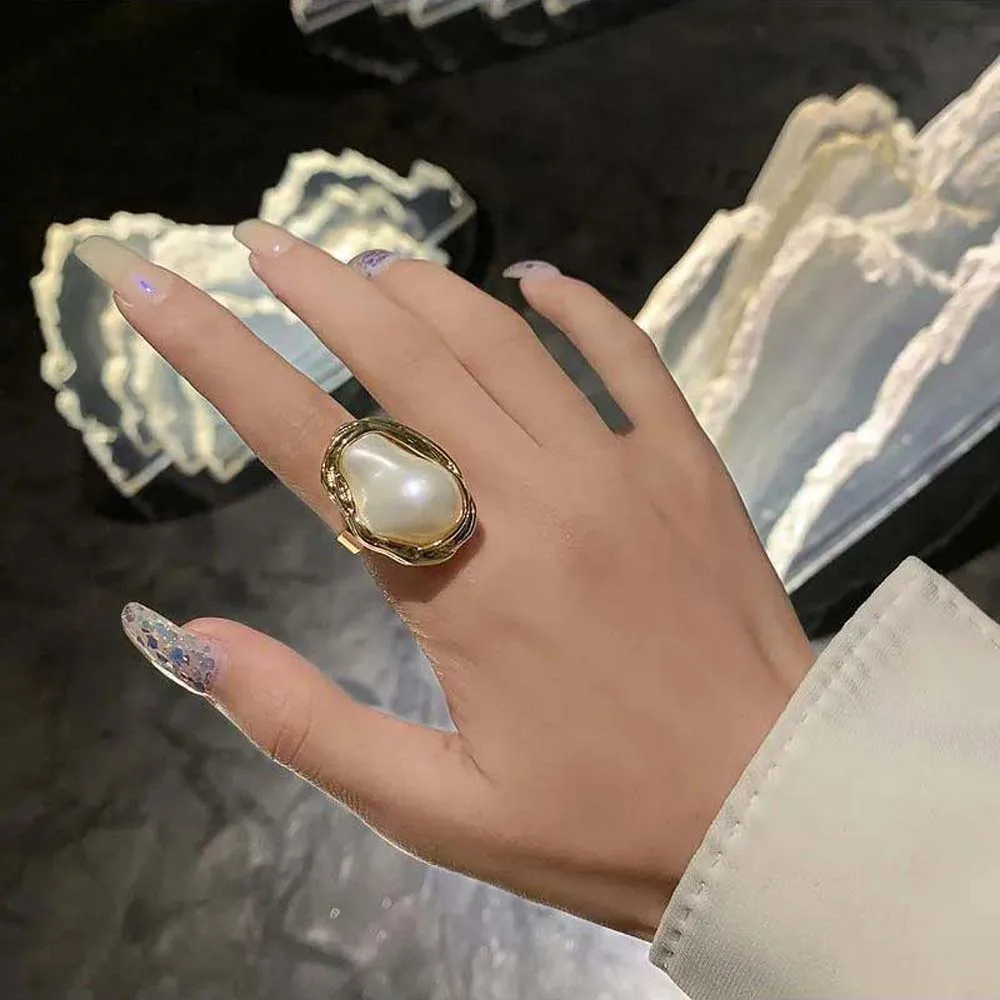 Женское Открытое кольцо с большим жемчугом, регулируемое кольцо неп...