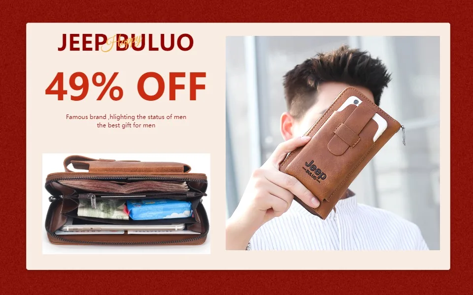 Мужской клатч JEEP BULUO, вместительный кошелек, многофункциональны...