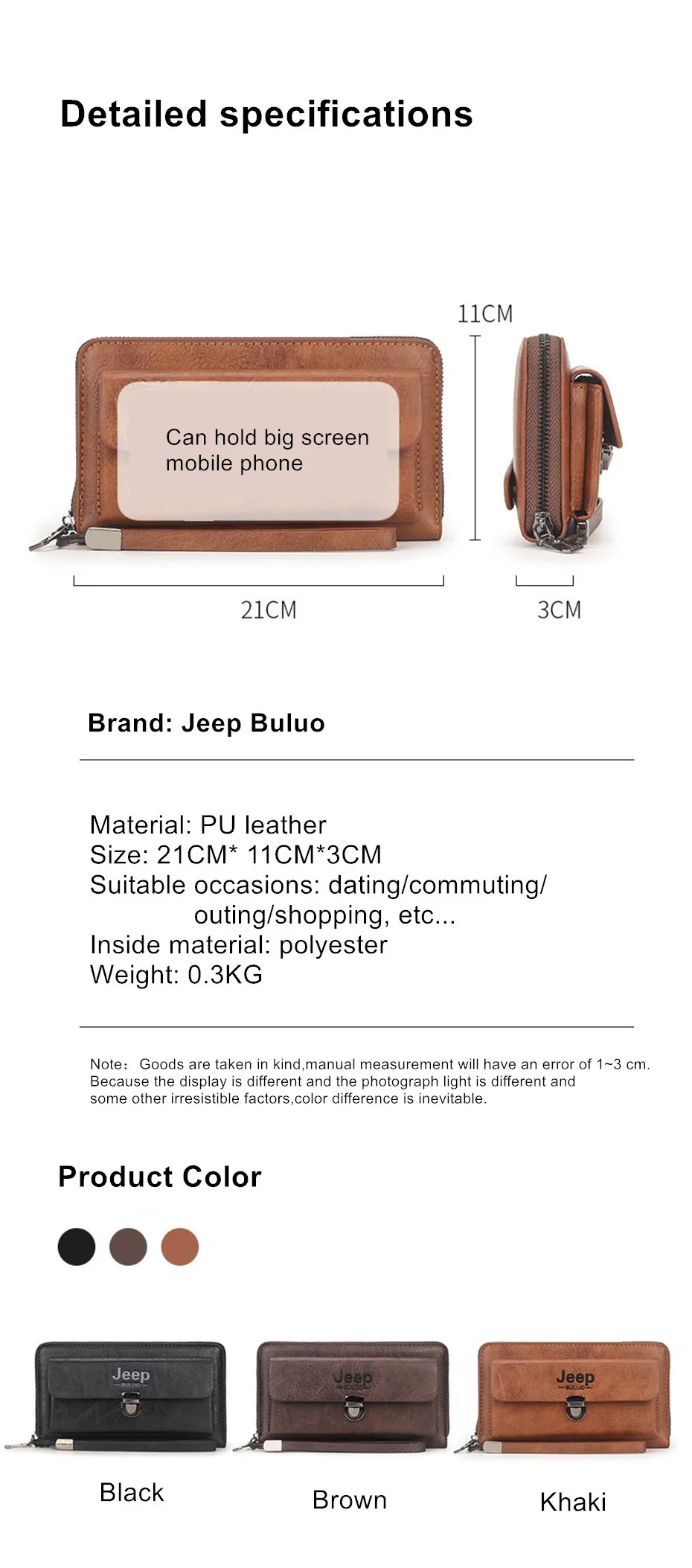 Jeep Buluo Длинный кошелек для мужчин клатч большой емкости мужской большой кошелек для телефона высокое качество деловая сумка для мужчин