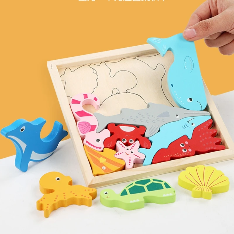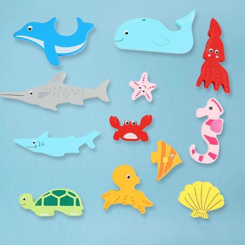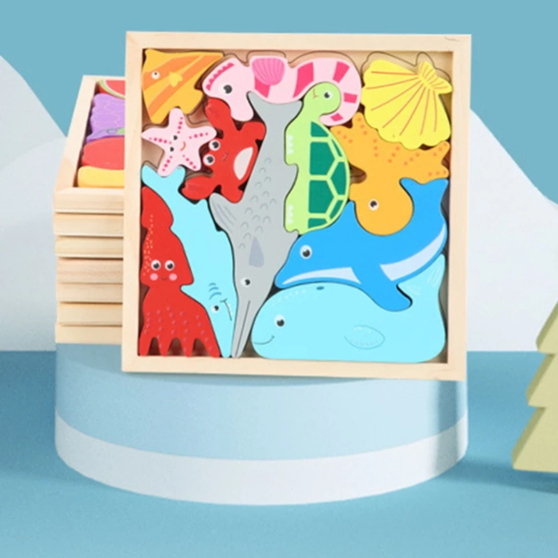 Деревянная головоломка с мультяшным познанием, танграмма, раскрашенная водой форма, Детская развивающая игрушка, подарок для дошкольного возраста