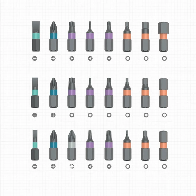 Особенности:* Многофункциональный Трещоточный ключ, отвертка, можно изменить по желанию, чтобы адаптироваться к большему количеству случаев.* 24 шт промышленный класс S2 хромированные молибденовые отвертки из легированной стали, с непрерывной термообработкой.