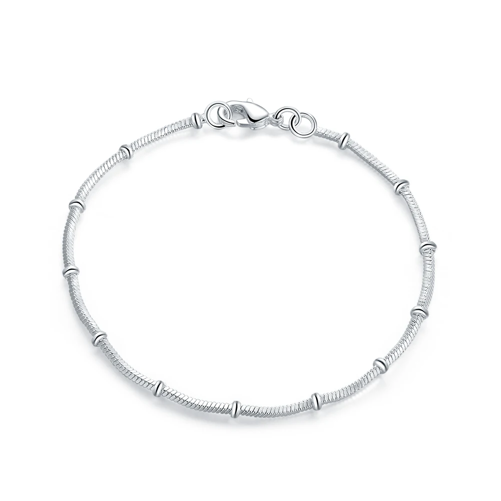100% Real 925 Sterling Silver Tiny Thin Beads Snake Chain Bracelet ...