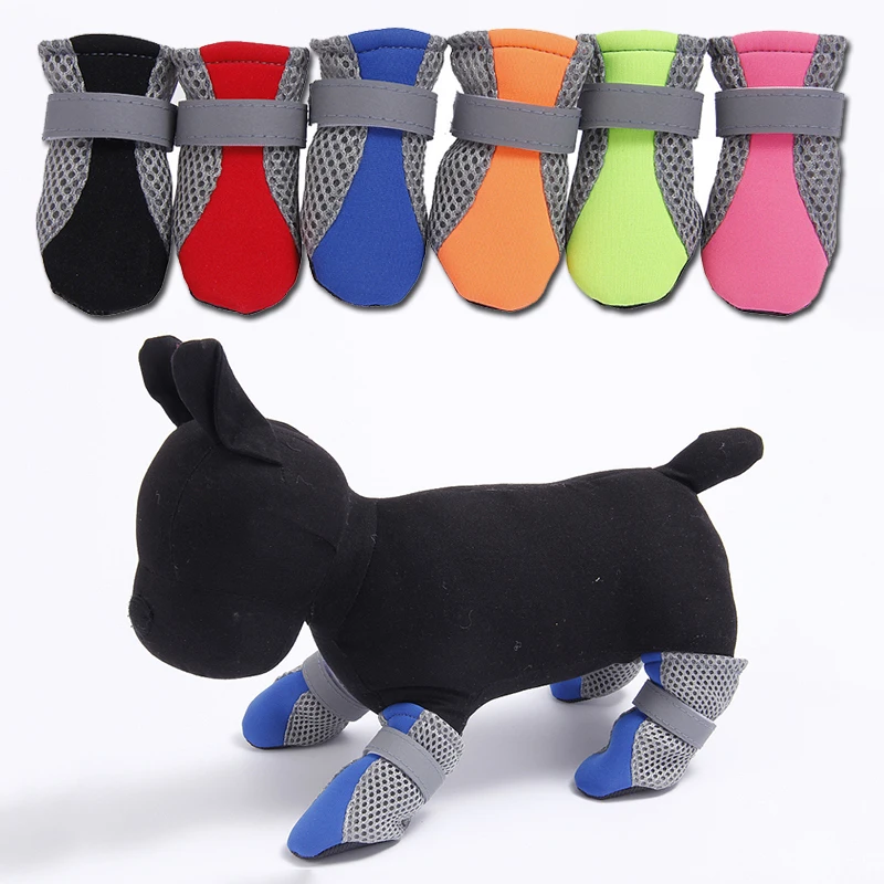 Обувь для собак, дышащая нескользящая обувь для собак, водонепроницаемые защитные сапоги для дождя, носок, сапоги для домашних животных, милая сетчатая обувь защитные ремни