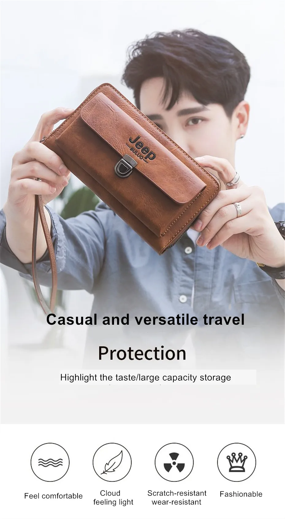Мужской клатч JEEP BULUO, вместительный кошелек, многофункциональны...
