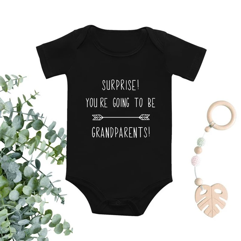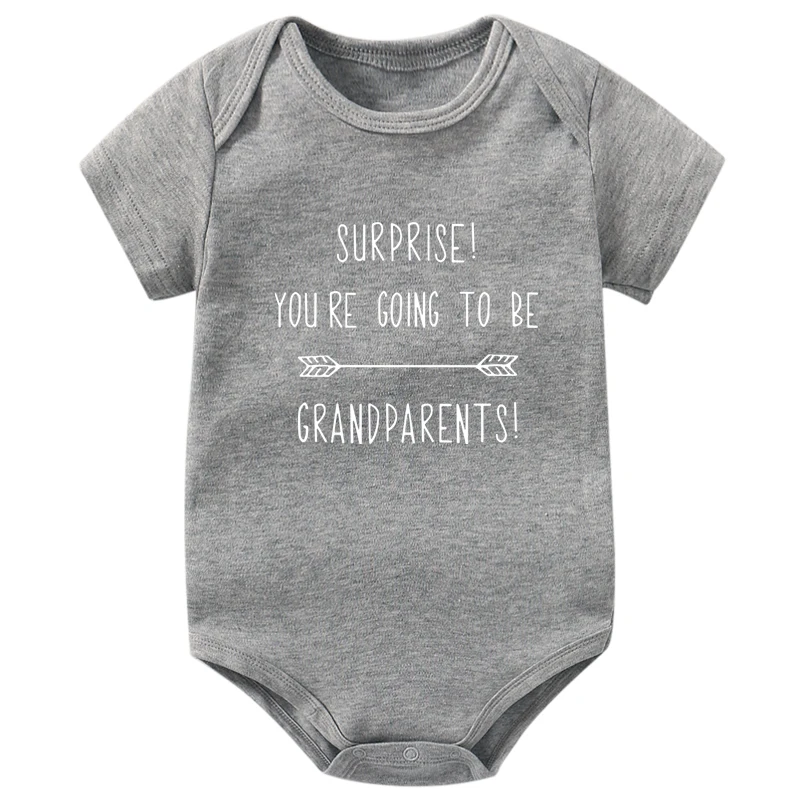 Оригинальные комбинезоны сюрприз! Модный комбинезон для новорожденных мальчиков и девочек с принтом вы будете быть бабушкой и дедушкой