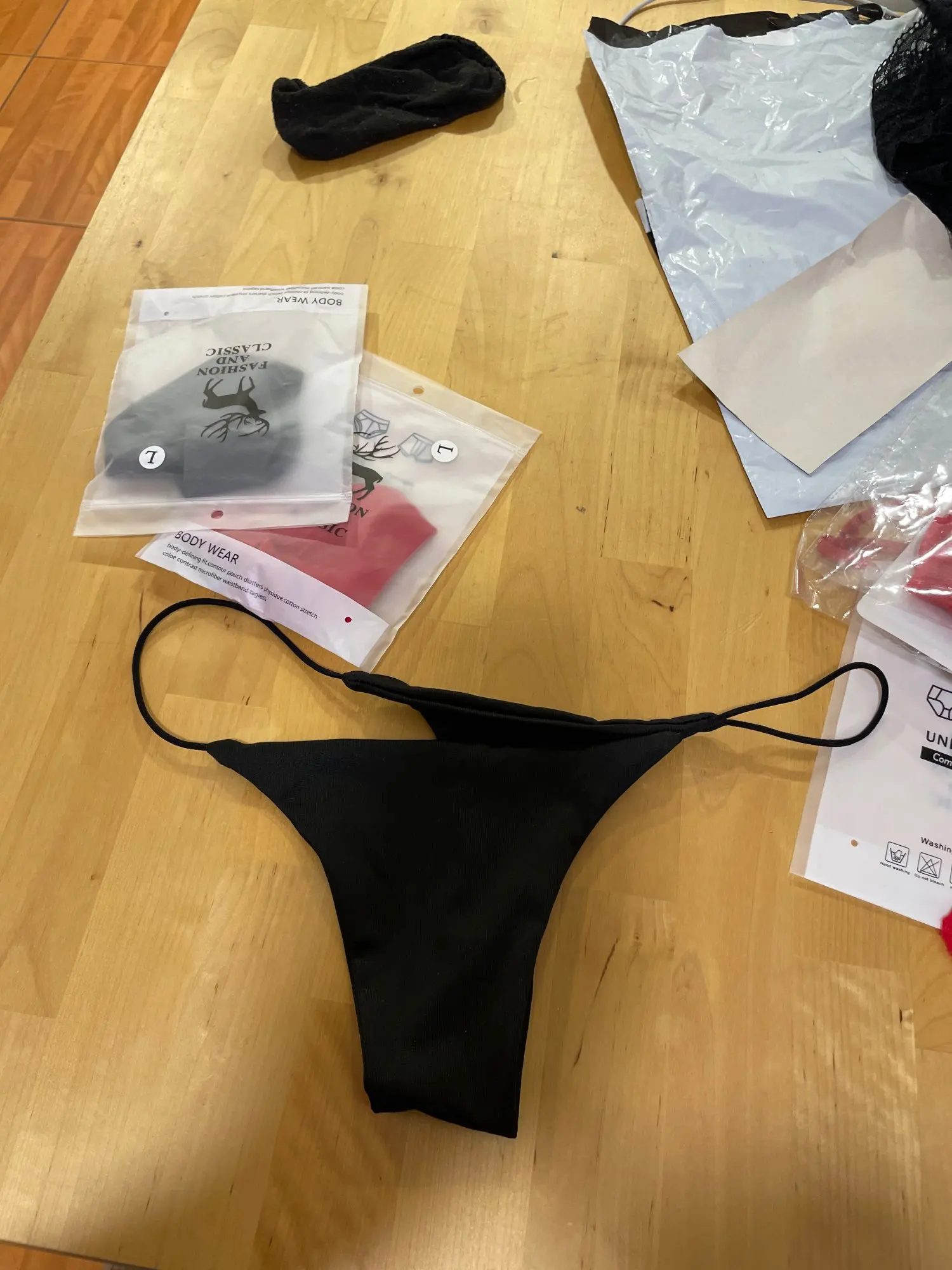 Никому не советую покупать это. Это не нижнее белье, а скорее низ от купальника. Что-то абсолютно синтетическое, покрой жутко неудачный, ткань сострочена изнутри и выглядит это ужасно, особенно сзади. Так как трусики не имеют резинку спереди и сзади (только по бокам), верхняя часть заднего треугольника просто заворачивается в обратную сторону и торчит назад. Я просто не хочу фотографировать это на себе, но все трое трусиков идут в мусорку, большего этот товар недостоин.