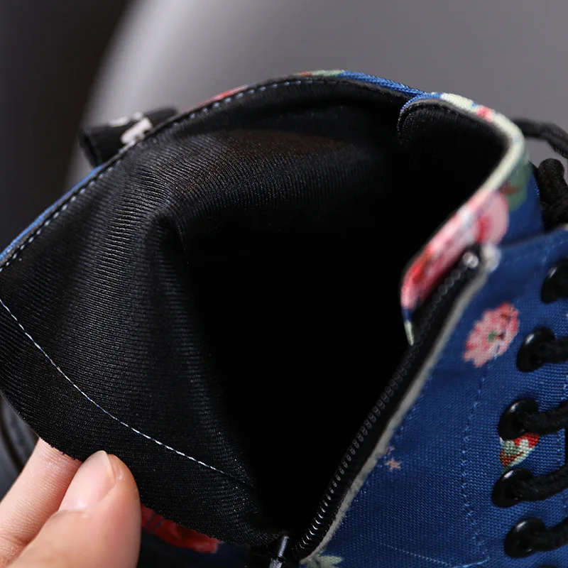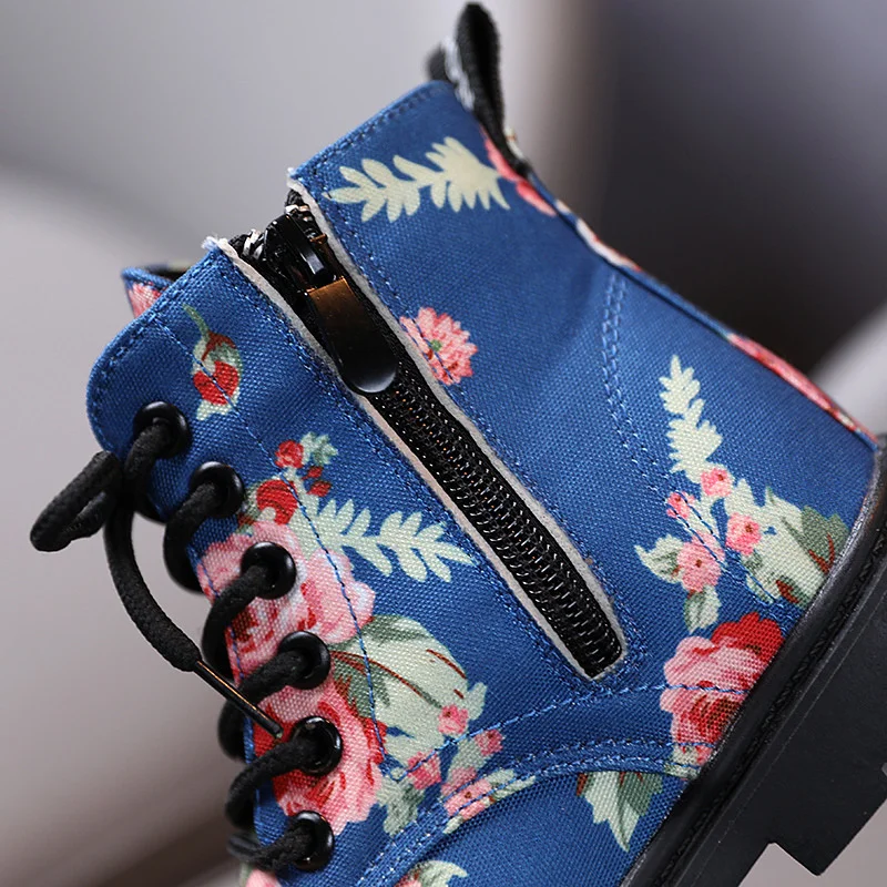 Ботинки-мартинсы для мальчиков и девочек, с цветочным принтом, осенне-весенние