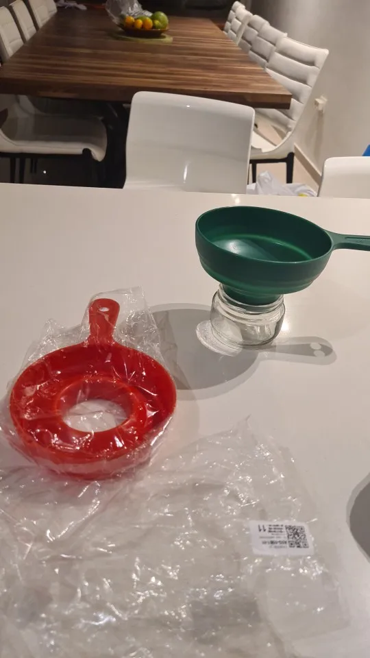 Воронка с широким горлышком для банок или других ёмкостей Теперь переливать варенье или компот из кастрюли в банку проще! Никаких промахов и ляпов) Так же отлично подойдёт для сыпучих продуктов. Качество отличное! Верхняя часть из пластика, а вся нижняя из плотного силикона больше похожего на резинку. Ширина горлышко внизу 5 см, а сверху 12 см. В Москву шла 3 недели с момента оплаты. Трек номер отслеживается.