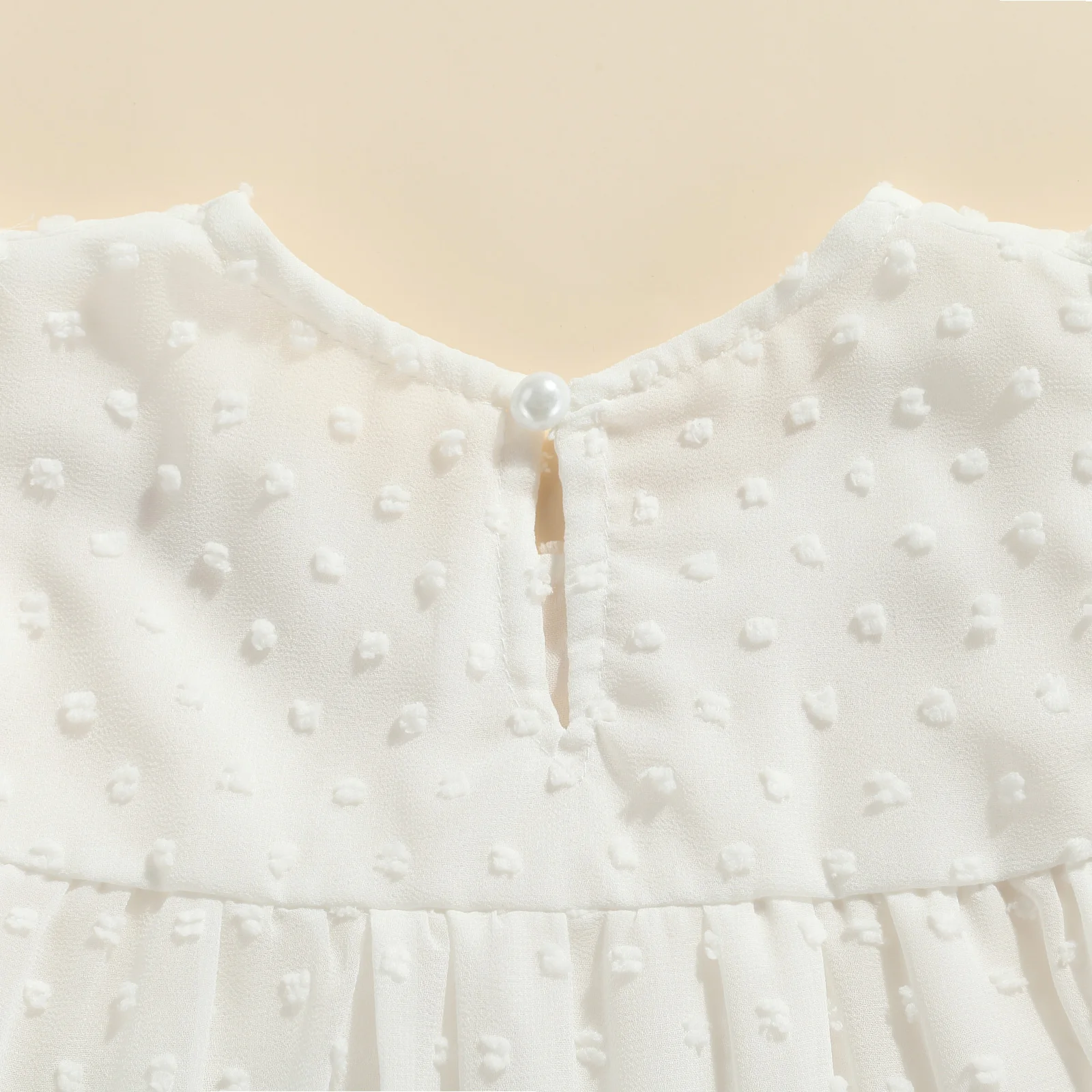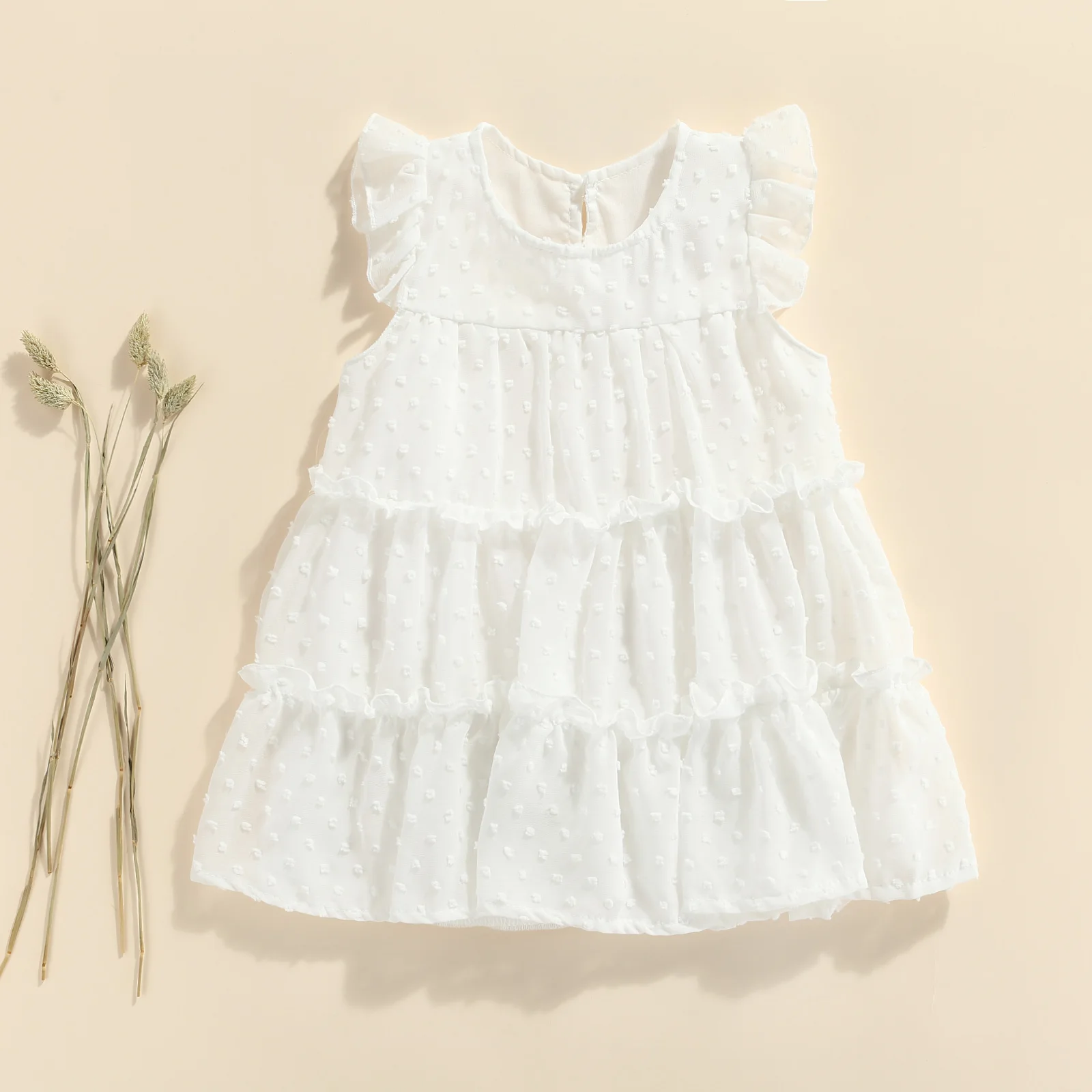 Летнее платье для девочек 2-7 лет, белое кружевное платье-трапеция с оборками, костюмы одежды для девочек