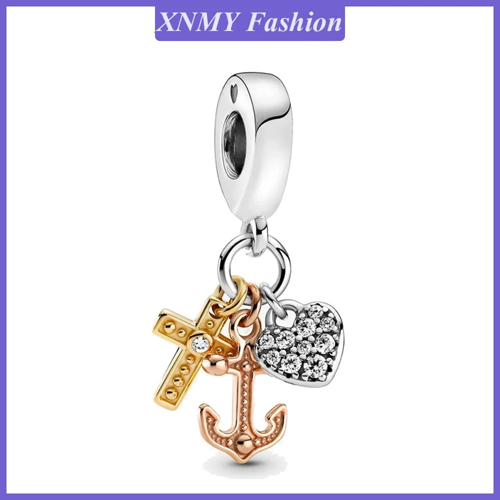 XNMY новый оригинальный бисер серебряного цвета трехцветный крест сердце и Якорь Подвеска подходящий европейский браслет Пандора Женские Ювелирные изделия