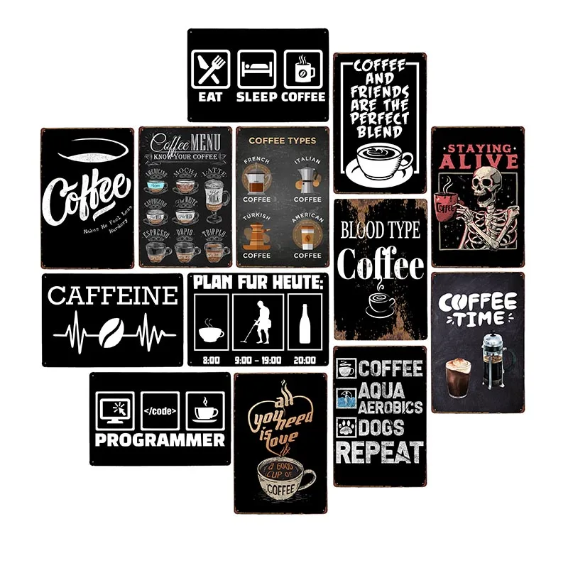 Металлическая Оловянная кофейная вывеска для бара, кафе, винтажное украшение для кафе, настенный декоративный постер для напитков 20x30 см