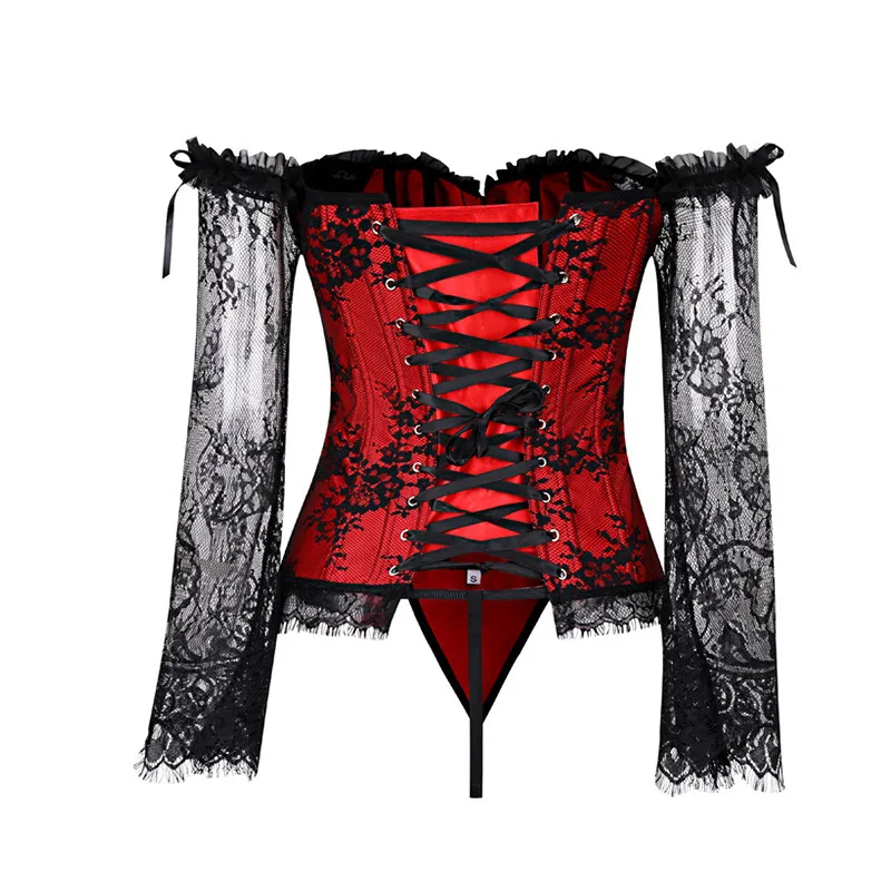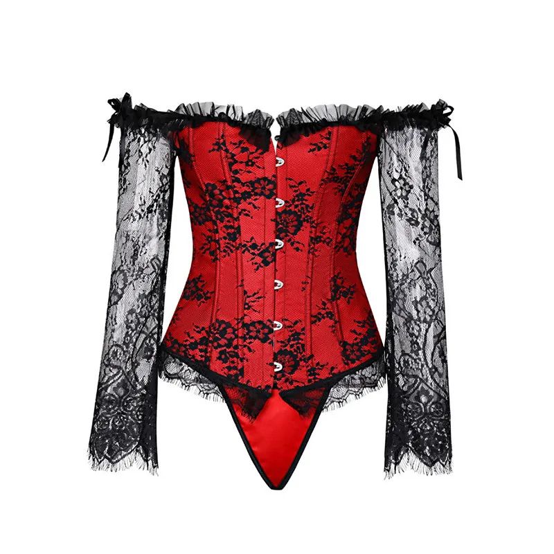 Корсет женский с длинным рукавом, Винтажный кружевной корсет в викт...