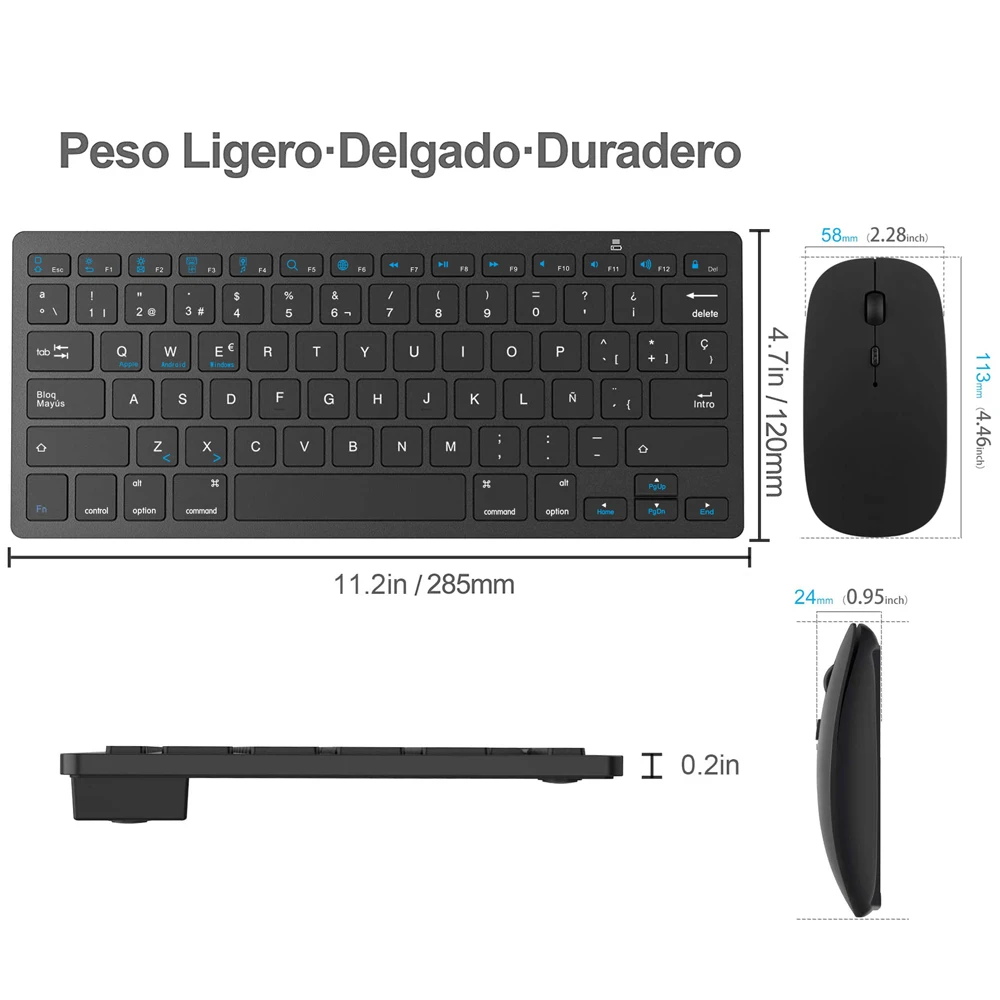 Универсальная совместимость: bluetooth-клавиатура и мышь работают с iOS, Android, Mac os (некоторые мультимедийные функциональные кнопки не совместимы) и Windows, с помощью клавиш быстрого доступа для всех четырех систем. Для Apple iPad Air, iPad 4 / 3 / 2, iPad Mini 4, iPhone 7Plus/7/6S/6 Plus, Galaxy Tab ,Galaxy Note, поверхность и многое другое (несовместимо с таблетками Nook)Тонкий и портативный: клавиатура и мышь для iPad достаточно маленькие, чтобы носить с собой, независимо от того, работаете вы или путешествуете. Кнопки на клавиатуре достаточно большие, чтобы наслаждаться вашим временемУдобные клавиши: Ножничные ножки и шоколадные клавишные колпачки обеспечивают чувствительные клавиши для комфортного и бесшумного ввода текста. Компоновка QWERTY с функциональными клавишами, включая громкость, управление музыкой, яркость и т. д. компактная форма мыши идеально подходит для использования в ладоняхКабель-бесплатно: Просто подключите беспроводную клавиатуру и мышь по Bluetooth к вашим устройствам, и вы можете использовать удобно и свободно, где хотите. Рабочее расстояние может достигать 10 метров