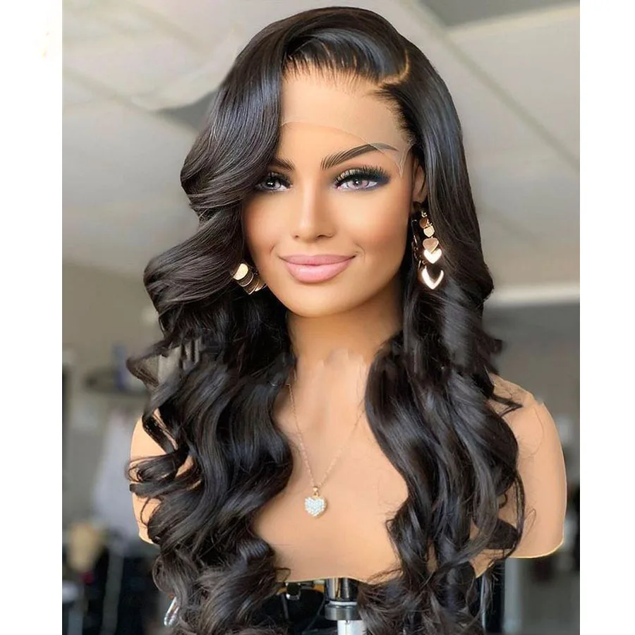 180% Плотность средняя часть тела волна кружева передний парик Синтетический для черных женщин предварительно выщипанные 26 дюймов длинные термостойкие Babyhair Soft