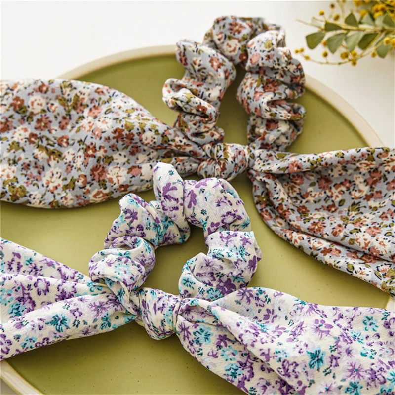 Резинка для волос женская с цветочным принтом, винтажная эластичная заколка для конского хвоста, аксессуар на голову