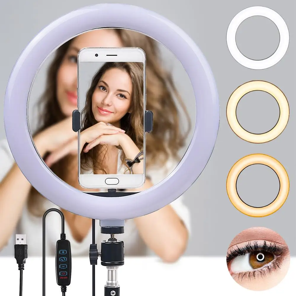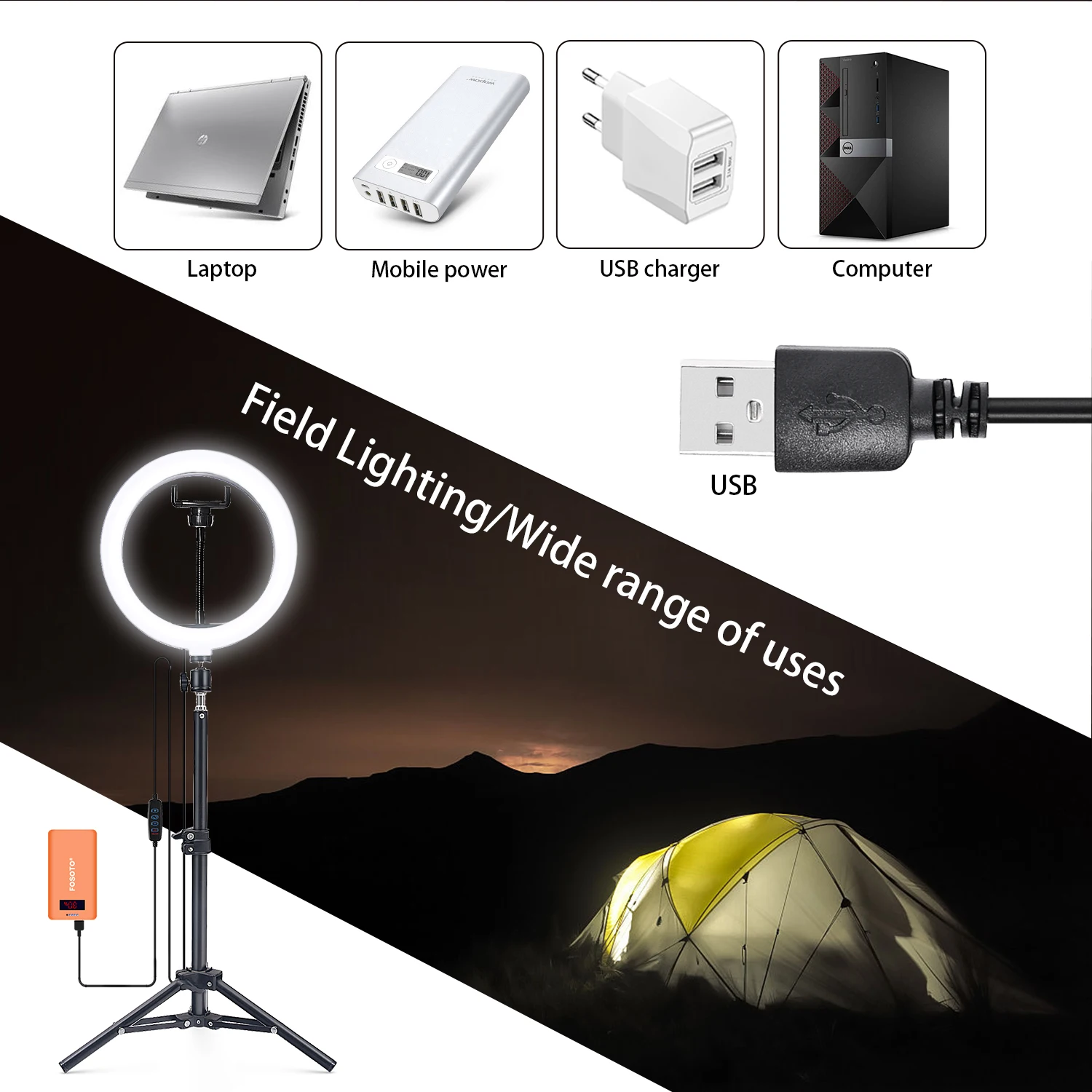 FOSOTO 26 см светодиодное кольцо для селфи с USB-портом, кольцевая лампа 10 дюймов, кольцесветильник лампа для фотосъемки с 50-дюймовым штативом для телефона, макияжа, Youtube Video