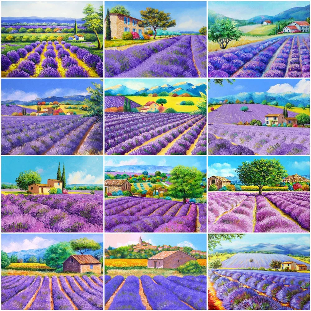 HUACAN DIY рамка краска по номеру Лавандовый цветок для взрослых картина по номерам пейзаж Акриловая Краска на холсте домашний декор