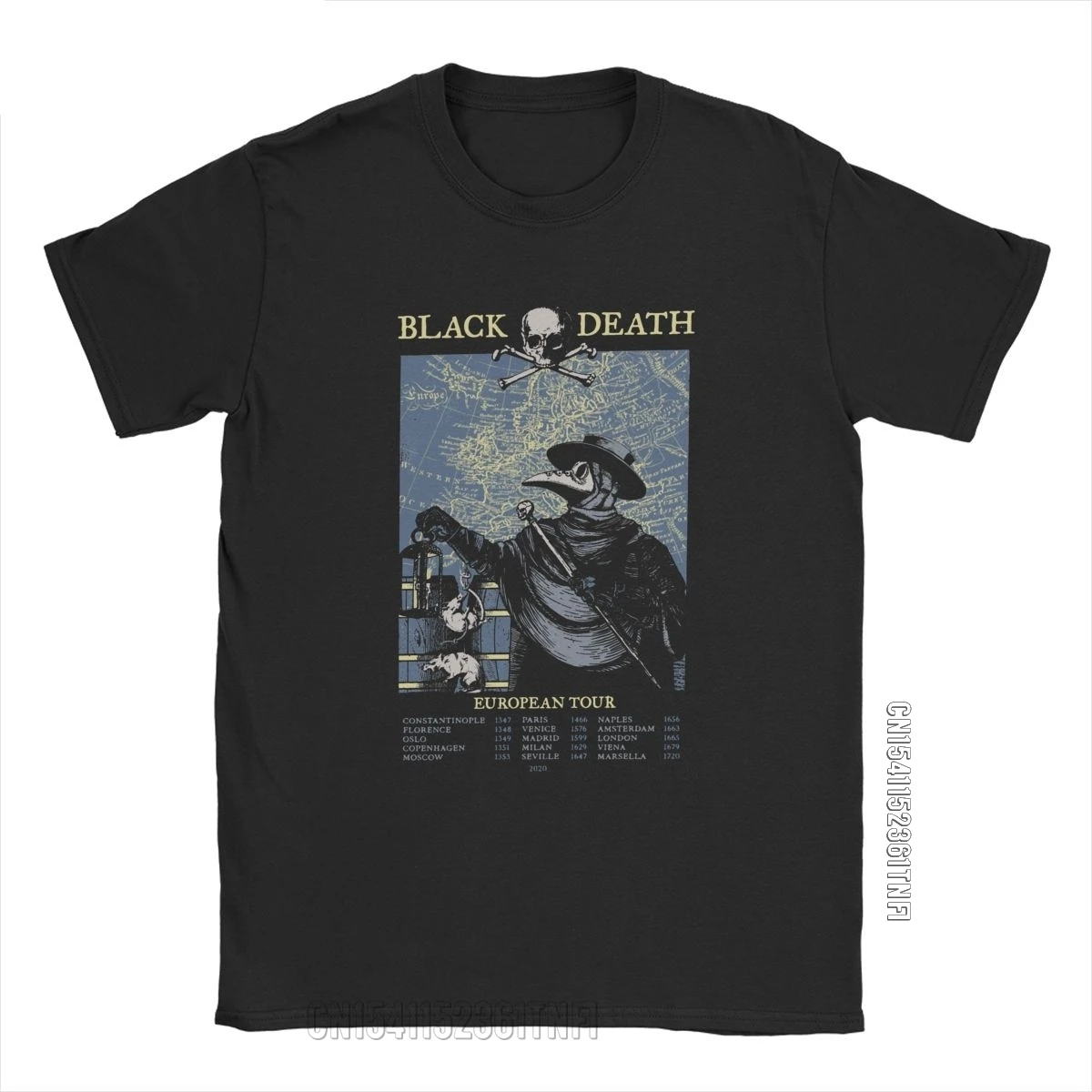 Мужские футболки Чумного доктора, европейские черные футболки Death Tour, потрясающие хлопковые футболки с круглым вырезом, классическая одежда с принтом