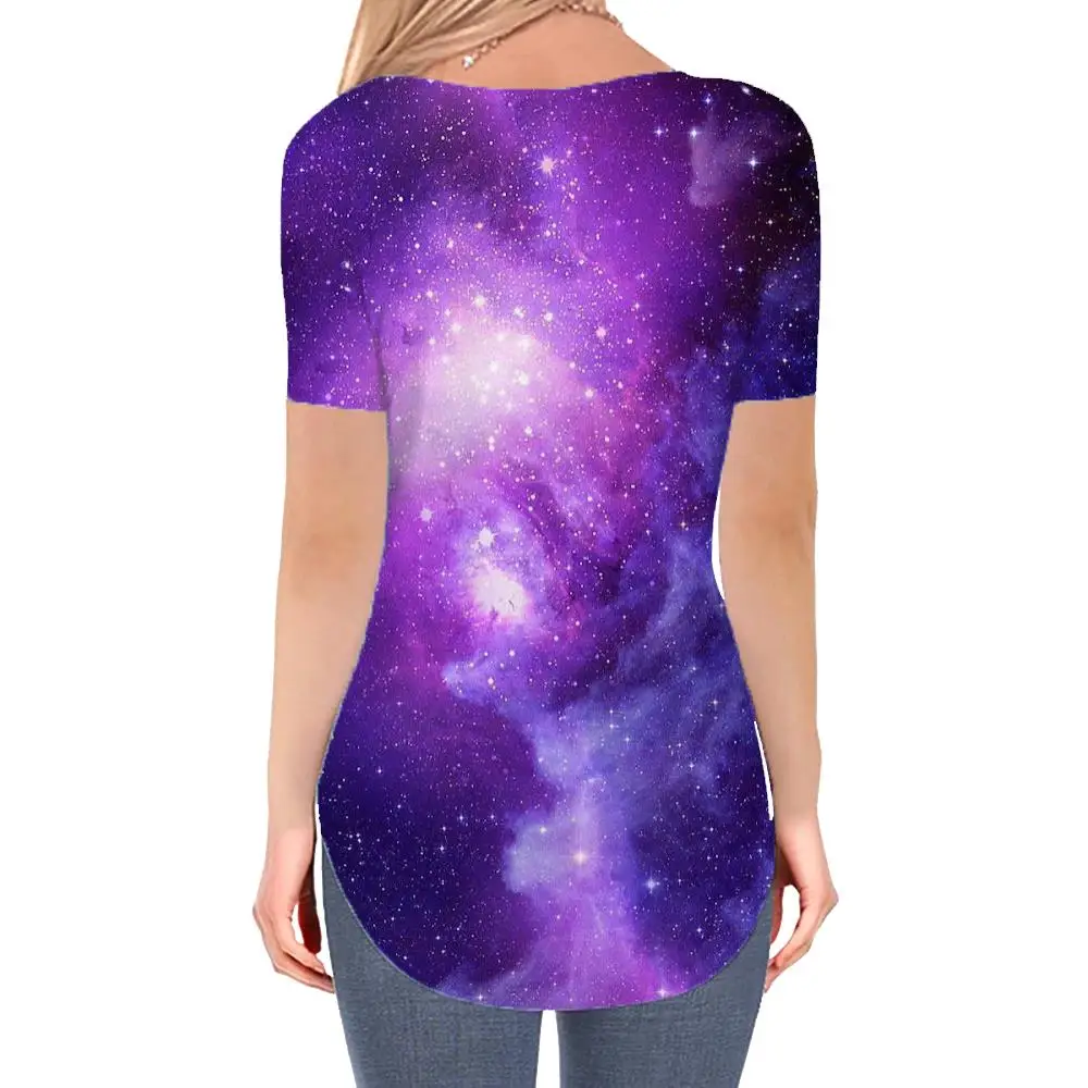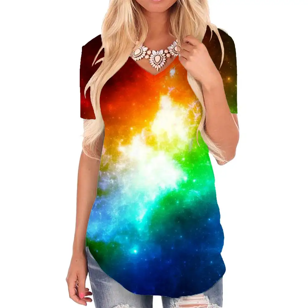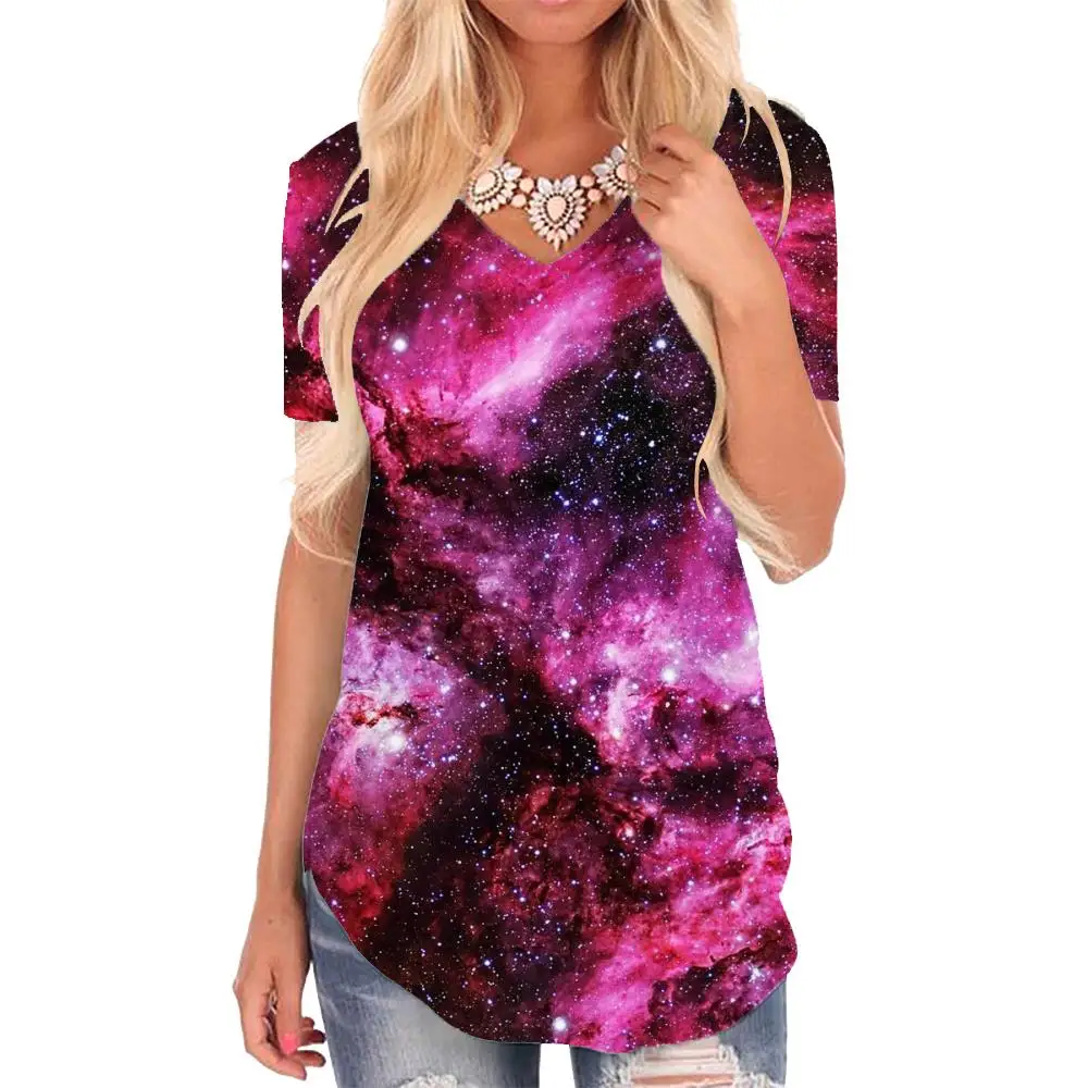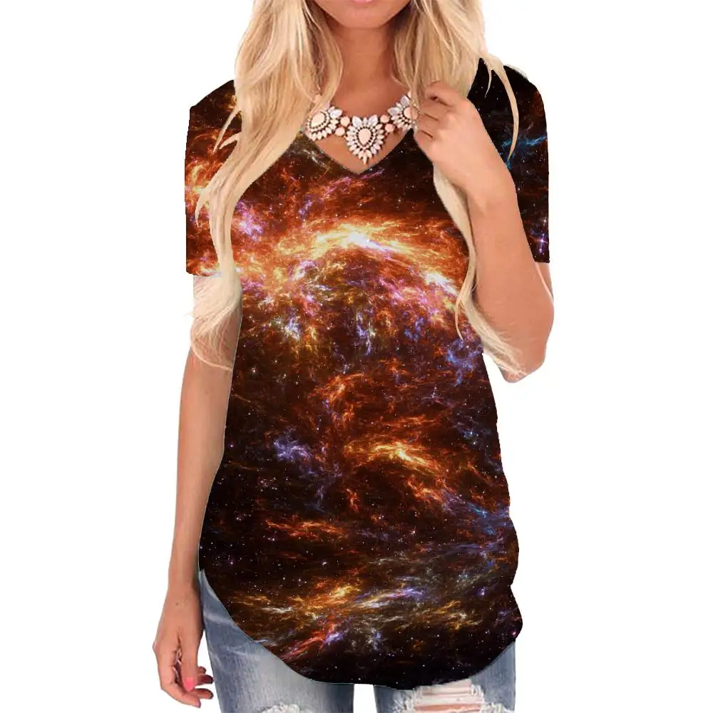 Футболка женская с принтом в виде туманности, с V-образным вырезом