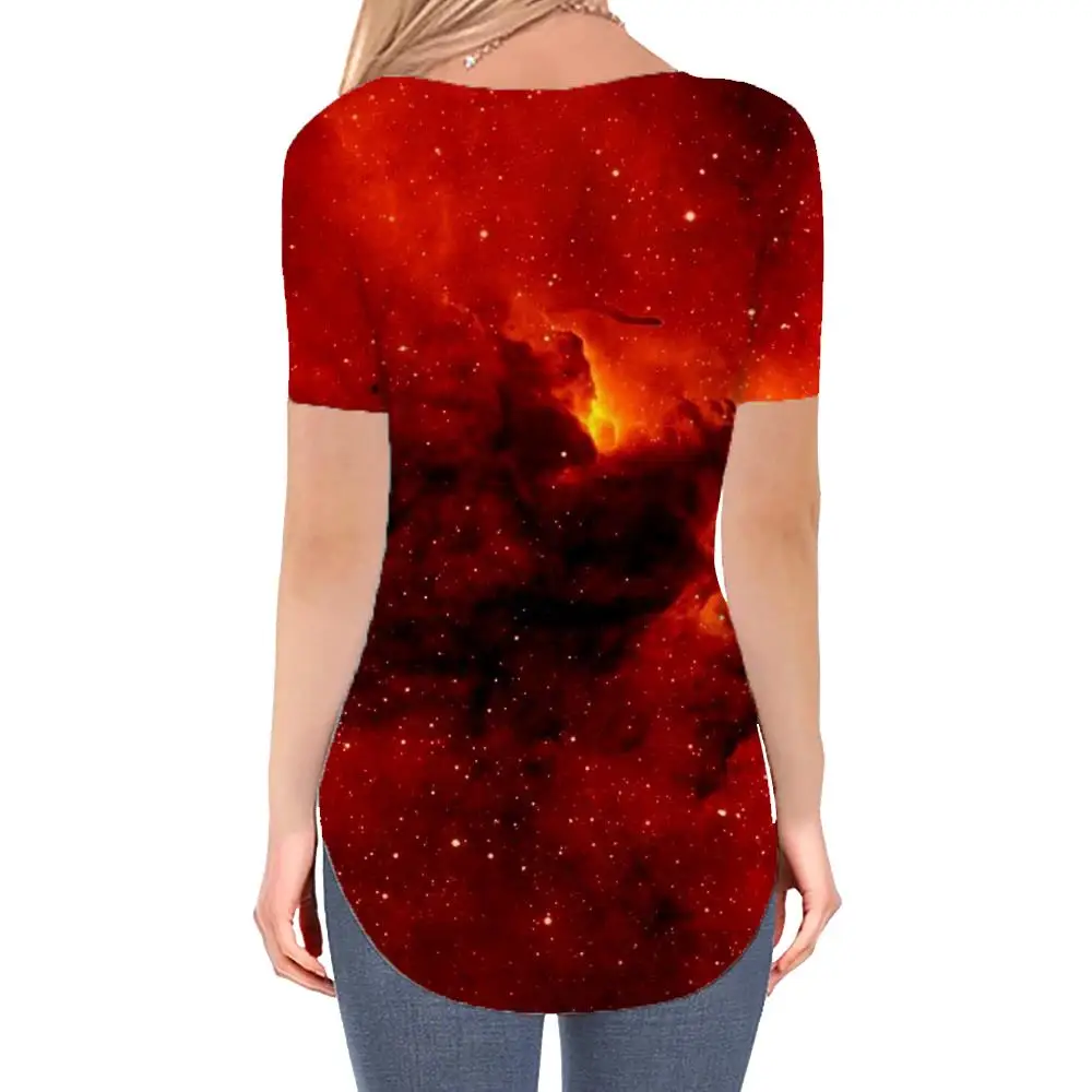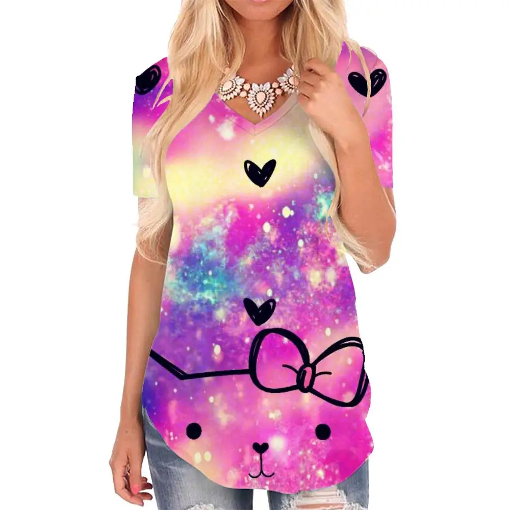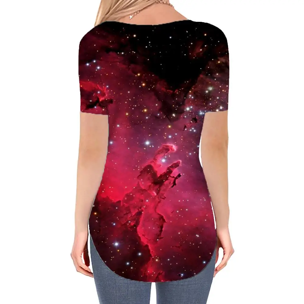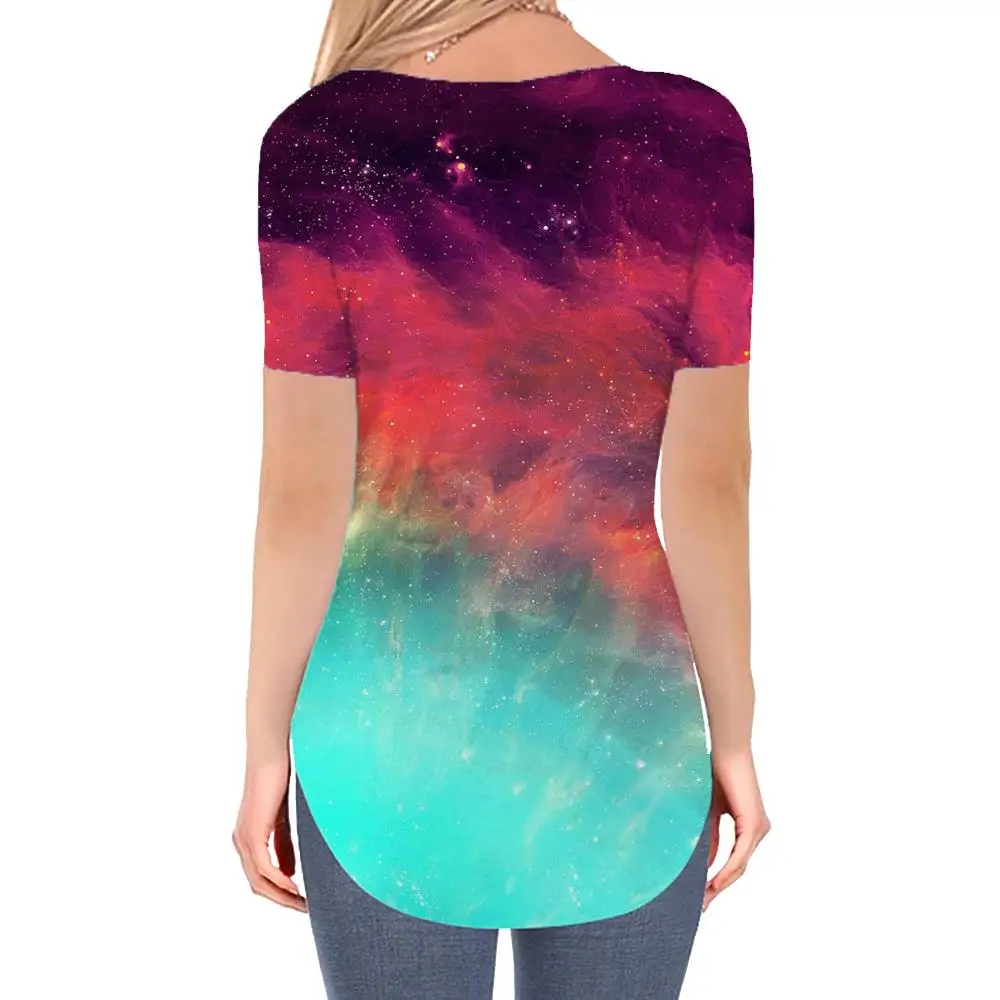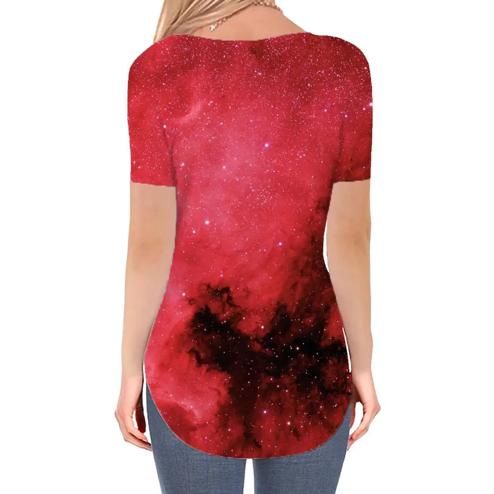 Футболка женская с принтом в виде туманности, с V-образным вырезом