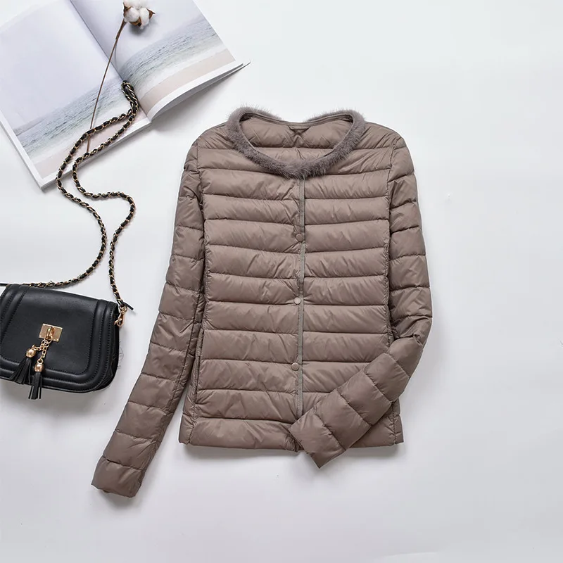Ульсветильник кое Женское пальто на утином пуху с мехом норки из матовой ткани, легкое пальто, теплая Женская ветровка, парка, женские пуховики