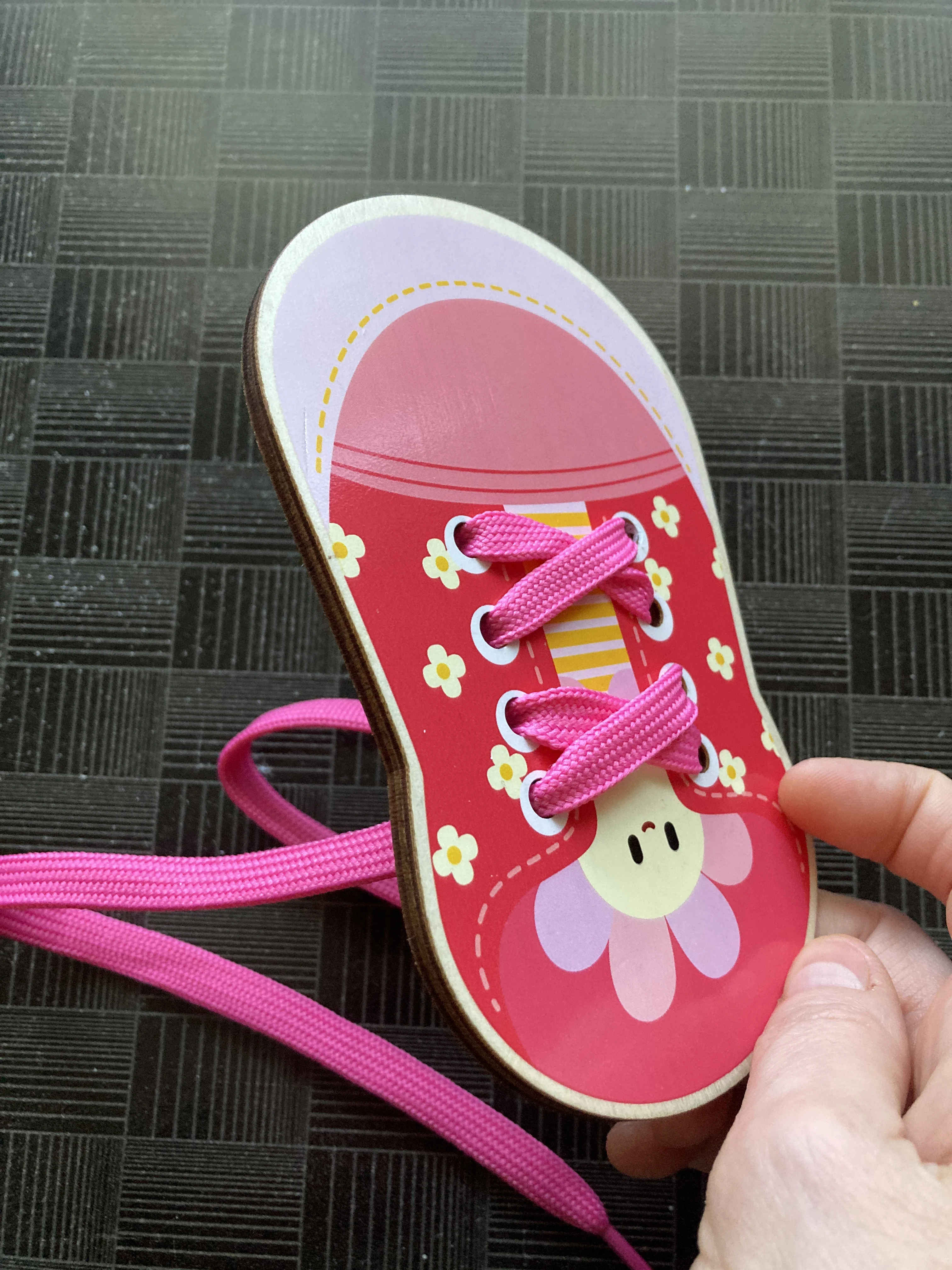 Я сразу не заметила когда заказывала, что тут только 4 пары дырок. Когда шнуровать начали, заметили, что если вдевать во все дырки, то узелок получается сзади. Нужно нечетное число рядов, чтобы шнурки из последних дырок наперёд выходили.