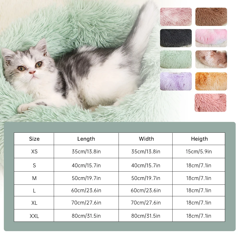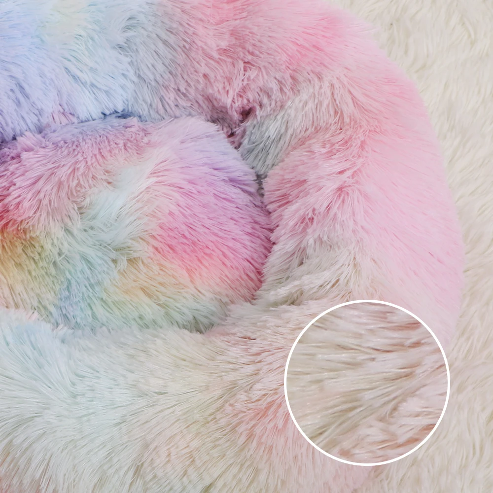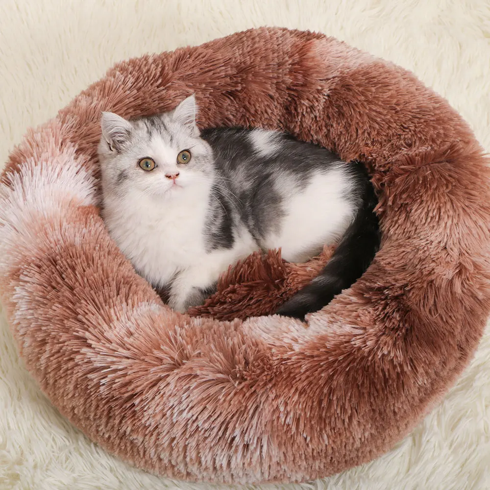 Длинная плюшевая пушистая кровать для собаки, раскладные кровати для кошек, Пончик, круглая скамейка, мягкая теплая собачья будка, большой коврик, подушка, товары для домашних животных nesk