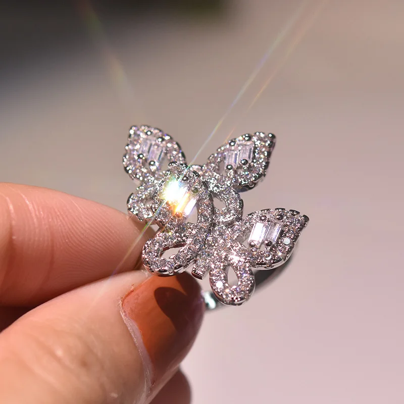 2019 Новое милое серебряное кольцо с бабочкой с камнем циркония для...