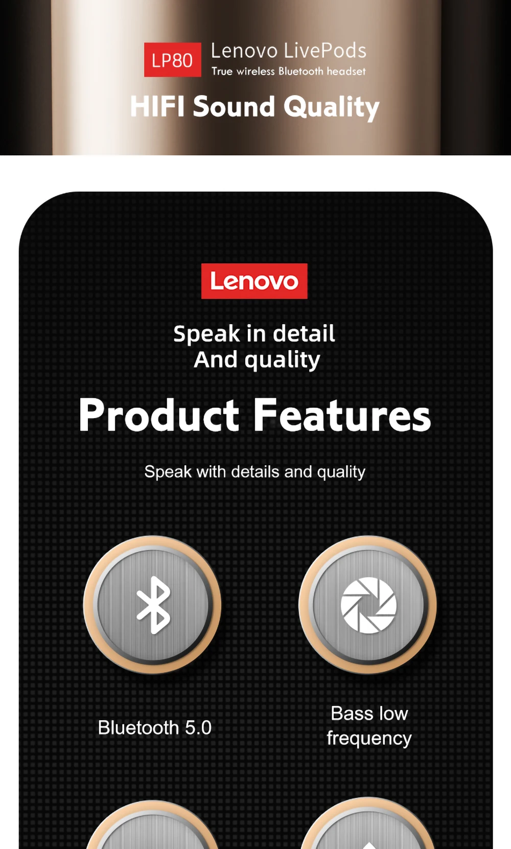 TWS-наушники Lenovo LP80 с поддержкой Bluetooth и сенсорным управлением