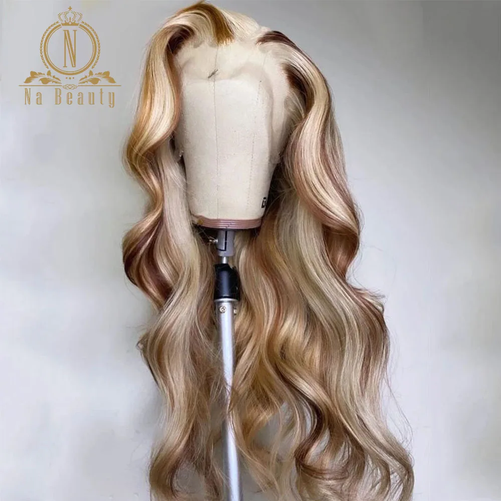 Хайлайтер 613, парик из человеческих волос коричневого и светлого цвета, волнистые волосы с эффектом омбре, HD, прозрачные кружевные передние парики для женщин, плотность 180, Nabeauty