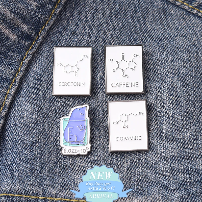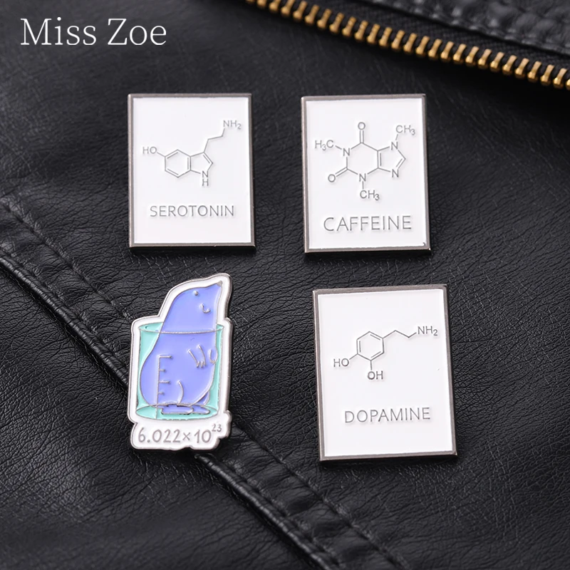 Эмалированные булавки с символами химикатов, броши с кофеином допам...
