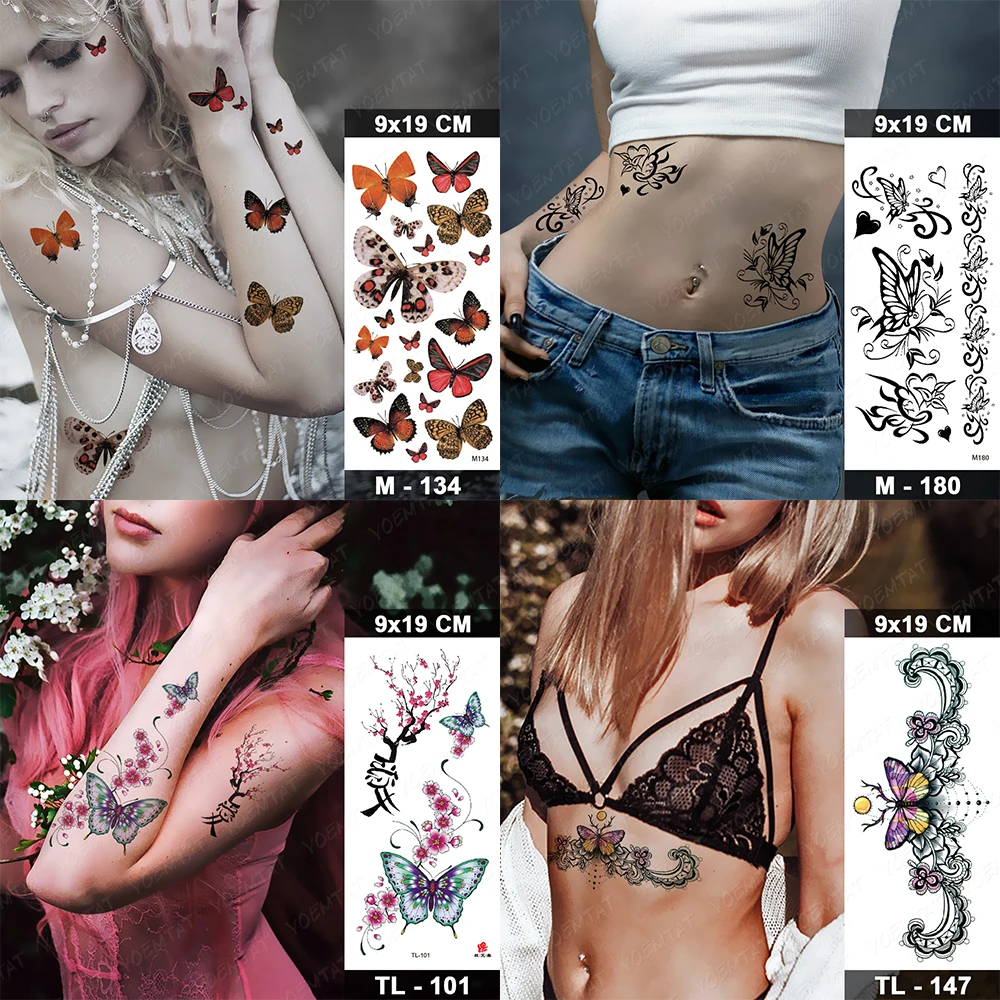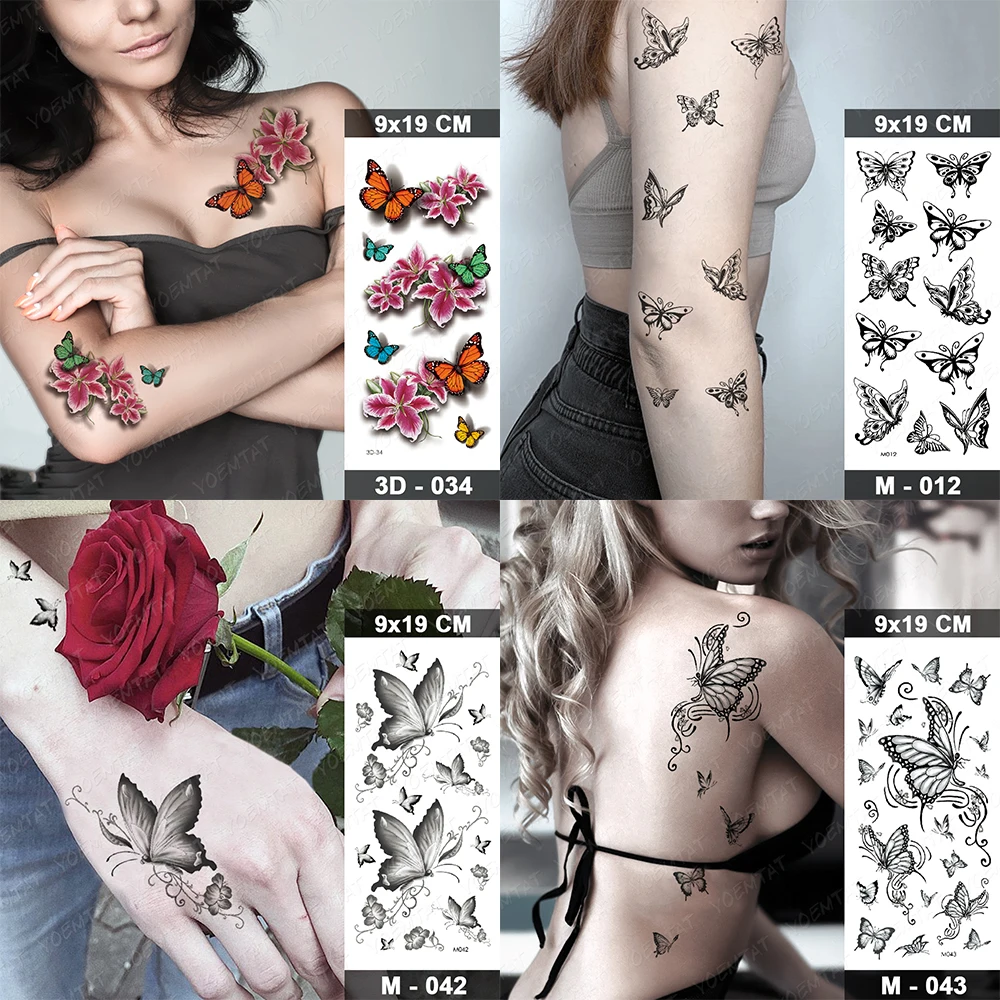 Водостойкая Временная тату-наклейка, темная бабочка, сексуальная женщина, задняя талия, флэш-тату, для девушек, боди-арт, искусственная тату, 3D реалистичный человек