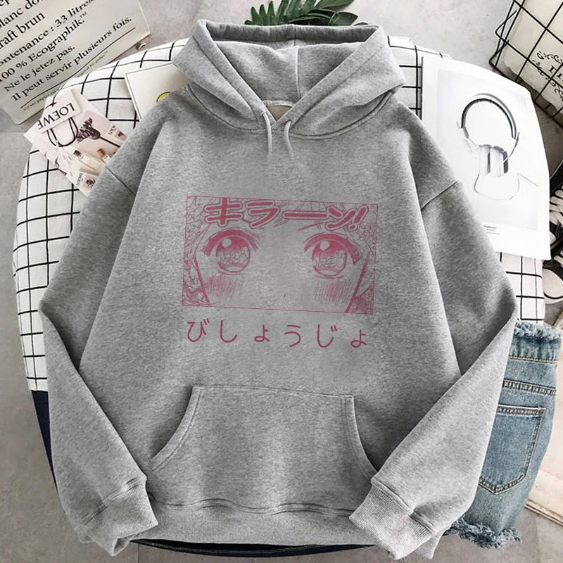 Кавайная толстовка с капюшоном, Женский свитшот с капюшоном в стиле аниме, оверсайз Свободный свитшот в стиле ольччан Харадзюку, милые женские толстовки с японским мультяшным рисунком