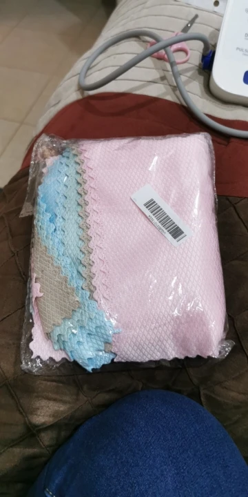 Заказывала зеленые, пришли голубые. 5 штук. Доставка небыстрая. Тряпочки отличные, функциональные. Немного маловаты, квадратик примерно 25х25, тонкие, не очень плотные. люблю покрупнее. Можно не использовать моющие средства, только немного приложить руки. Для мытья стекол и зеркал не подойдут, остаются разводы.