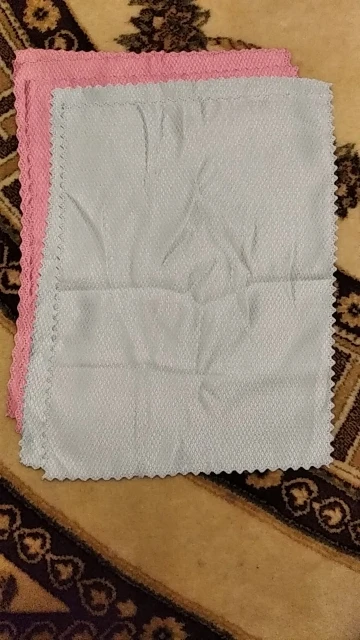 раньше покупала у другого продавца. думала, что все такие тряпочки одинаковые. но! эти оставляют разводы и на ощупь совсем другие. купила 2 раза по 10 штук на подарок. очень обидно.