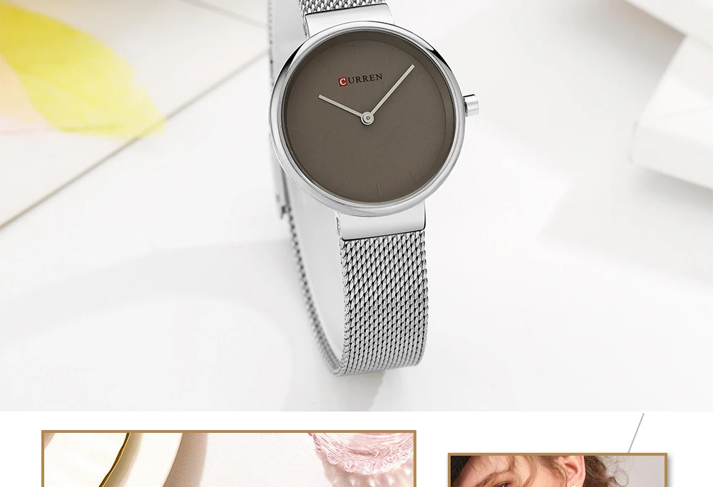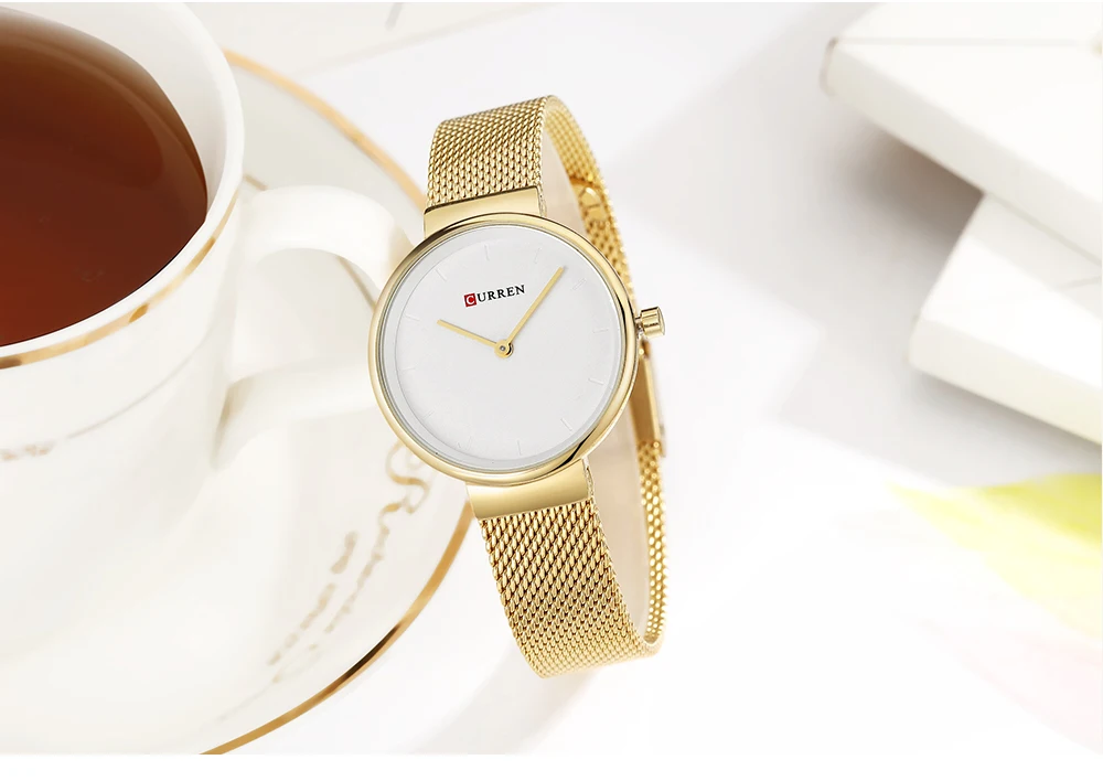 Часы CURREN женские кварцевые с сетчатым ремешком, брендовые Роскошные повседневные из нержавеющей стали