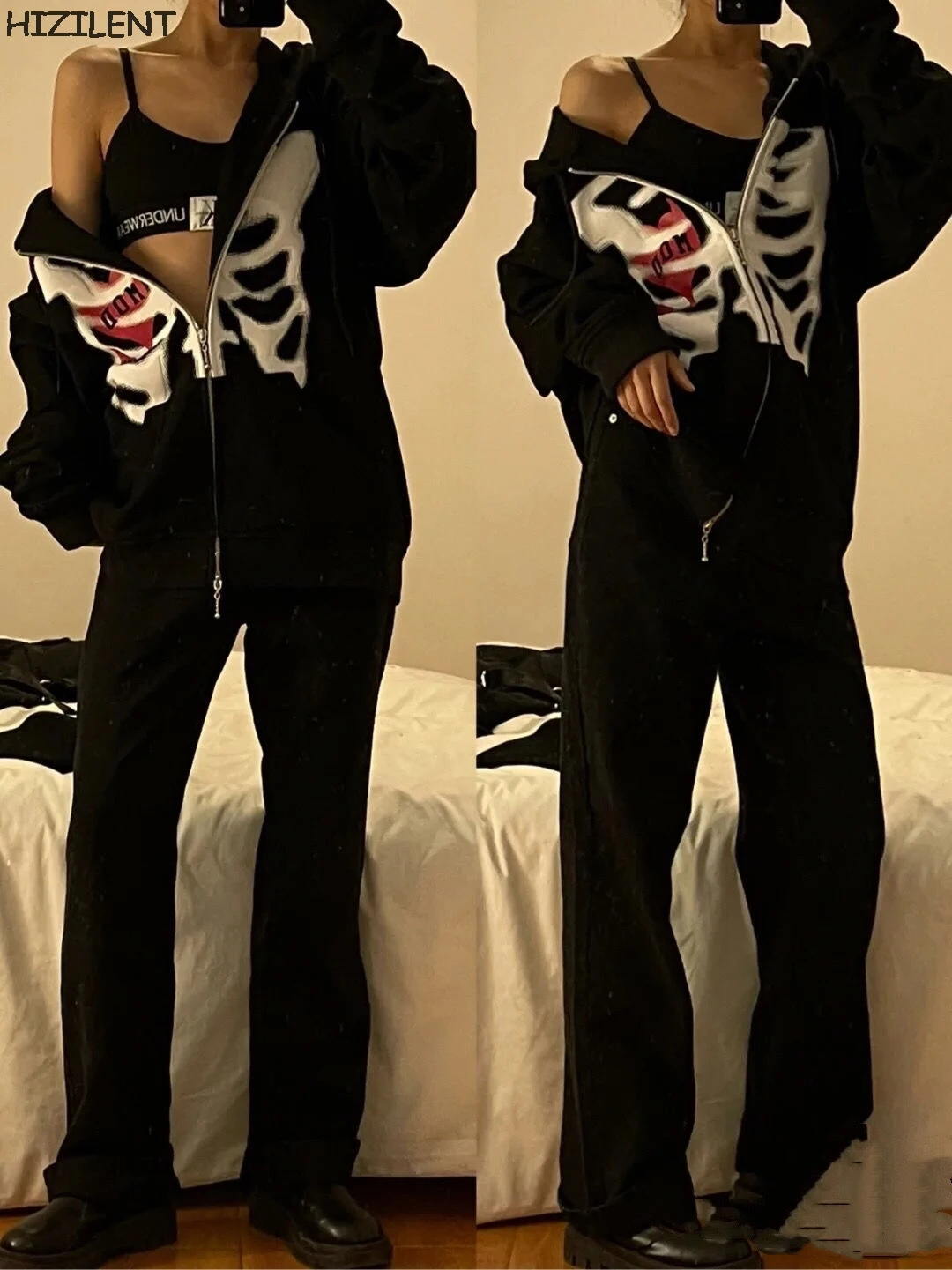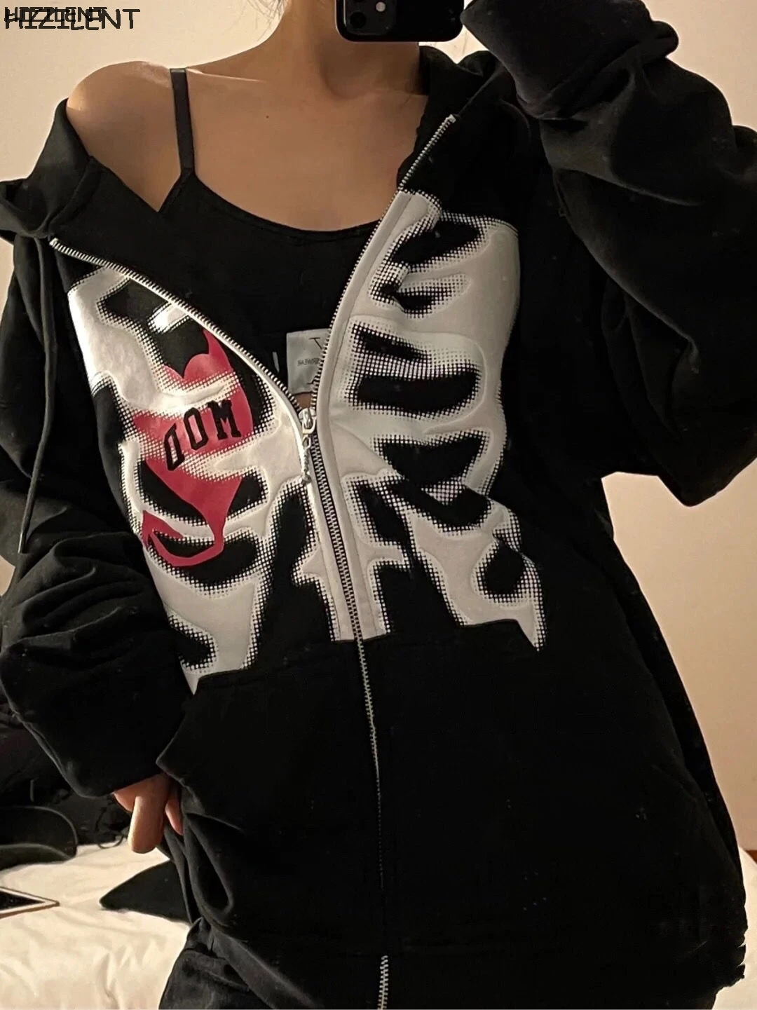 Женские худи на молнии Y2K Harajuku, свободные худи с принтом череп...