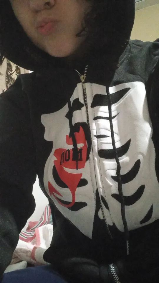 QWEEK, толстовка на молнии со скелетом, Женский Готический Топ, ули...