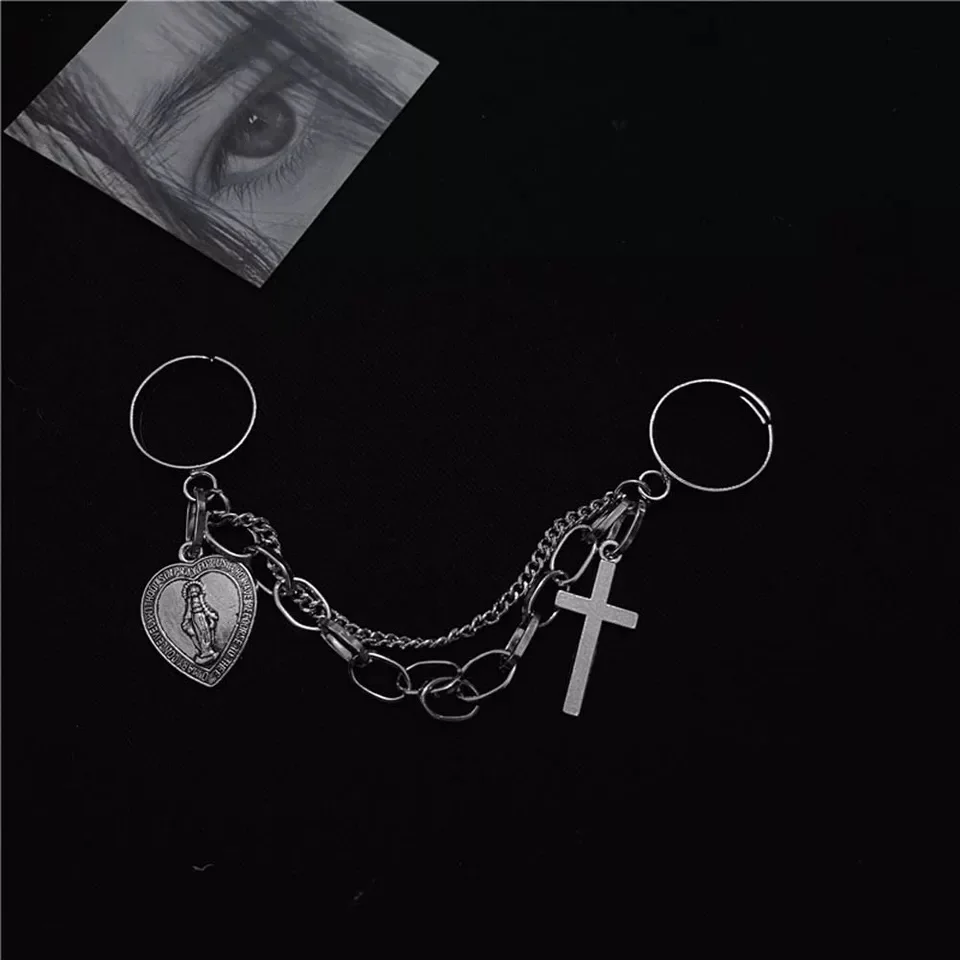 Кольцо в стиле ретро, панк, хип-хоп, с крестом, цепочка на палец, регулируемое, с двумя звеньями, ювелирные изделия, подарок, мужские, женские, готические украшения, кольца, новинка