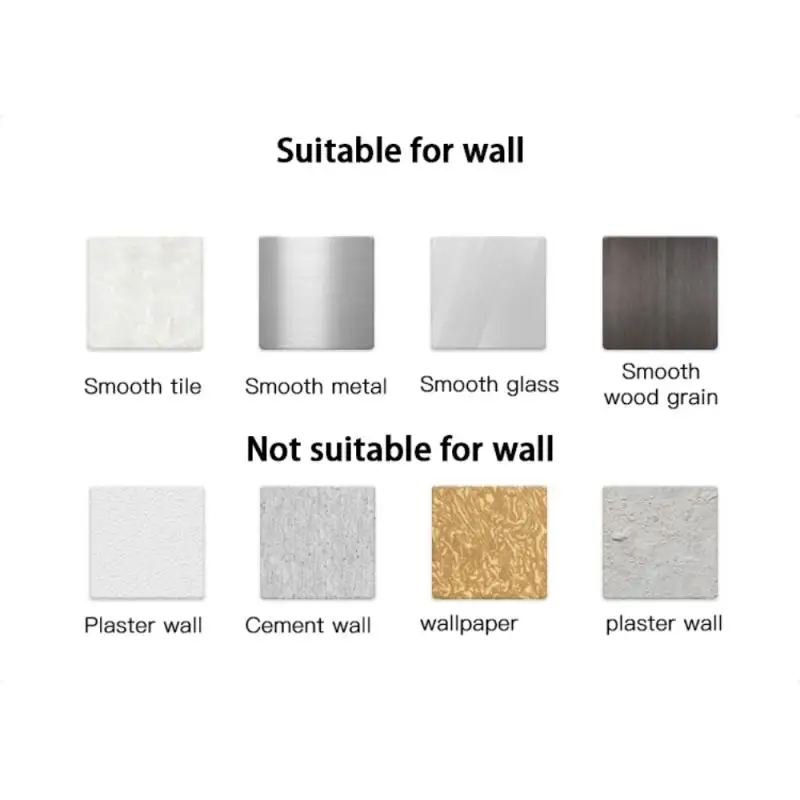 【Применимые стенки: гладкая плитка, деревянная стена, гладкий мрамор, гладкое стекло, матовое стекло, гладкий металл. Не подходит для поверхности с помощью обоев, окрашенных стен и других грубых поверхностей.