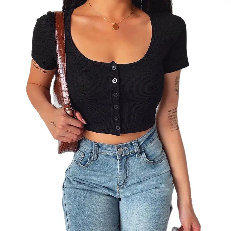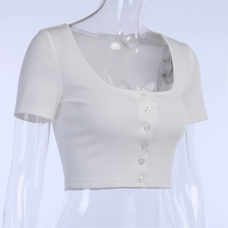 Женская футболка с коротким рукавом, разноцветный эластичный облегающий кардиган с квадратным вырезом в стиле ретро, лето