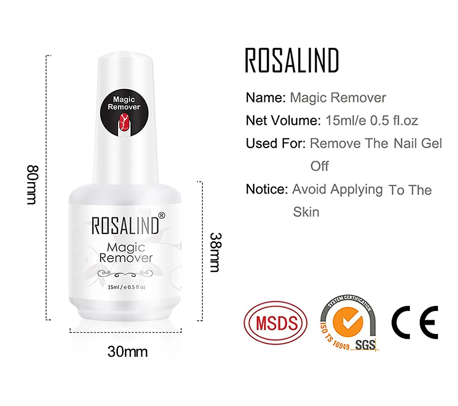 ROSALIND волшебное средство для удаления геля легкое удаление гель-лака очищающий УФ-гель для ногтей в течение 2-3 минут 15 мл волшебное удаление основа для ногтей верхнее покрытие