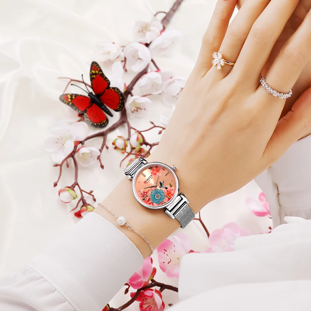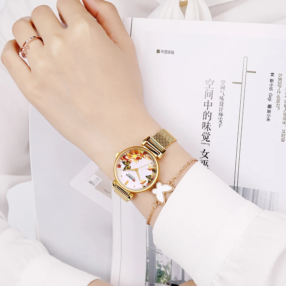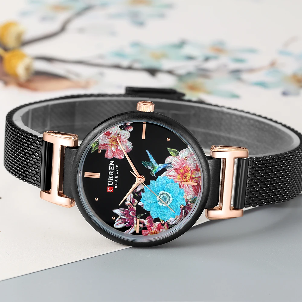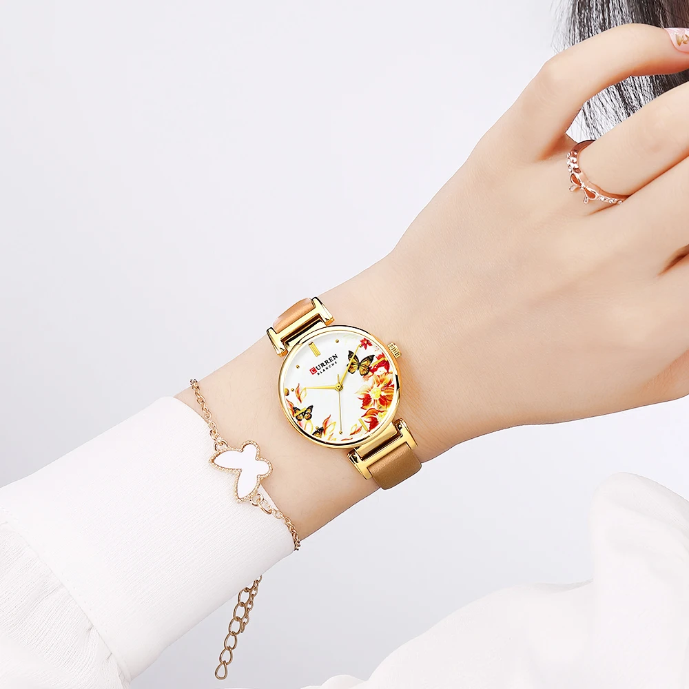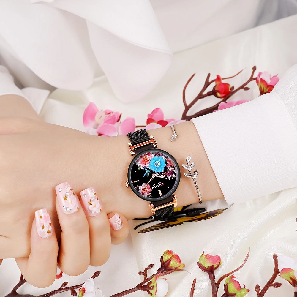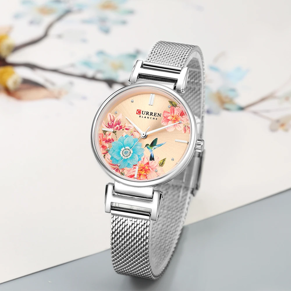 Часы CURREN женские наручные кварцевые, модные с цветочным цифербла...