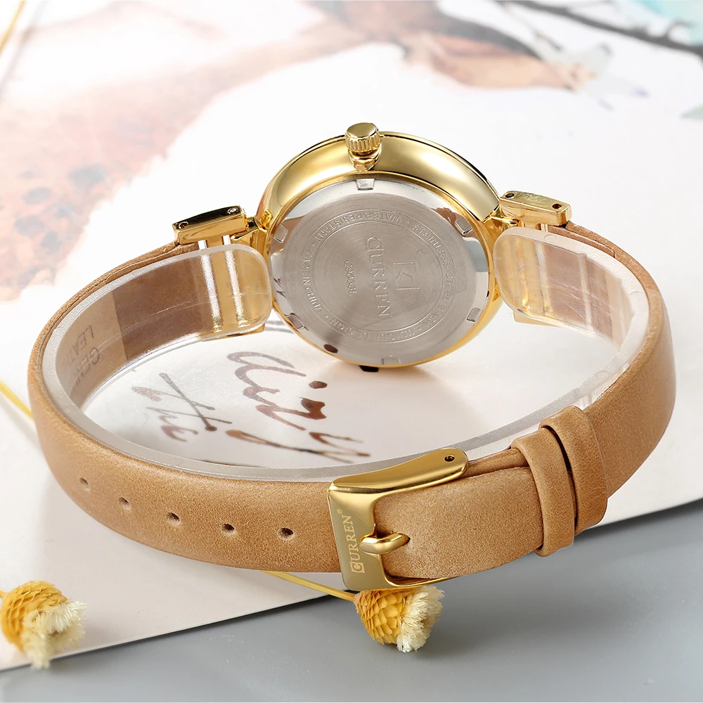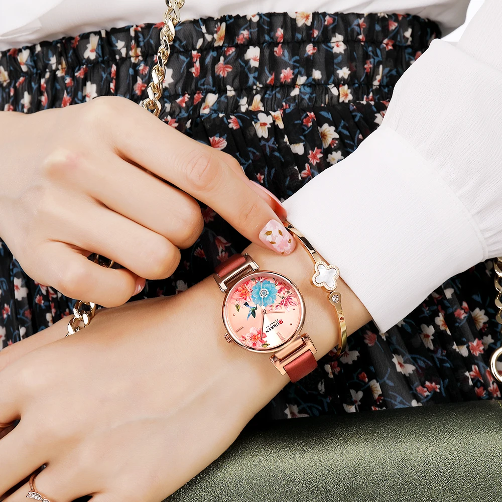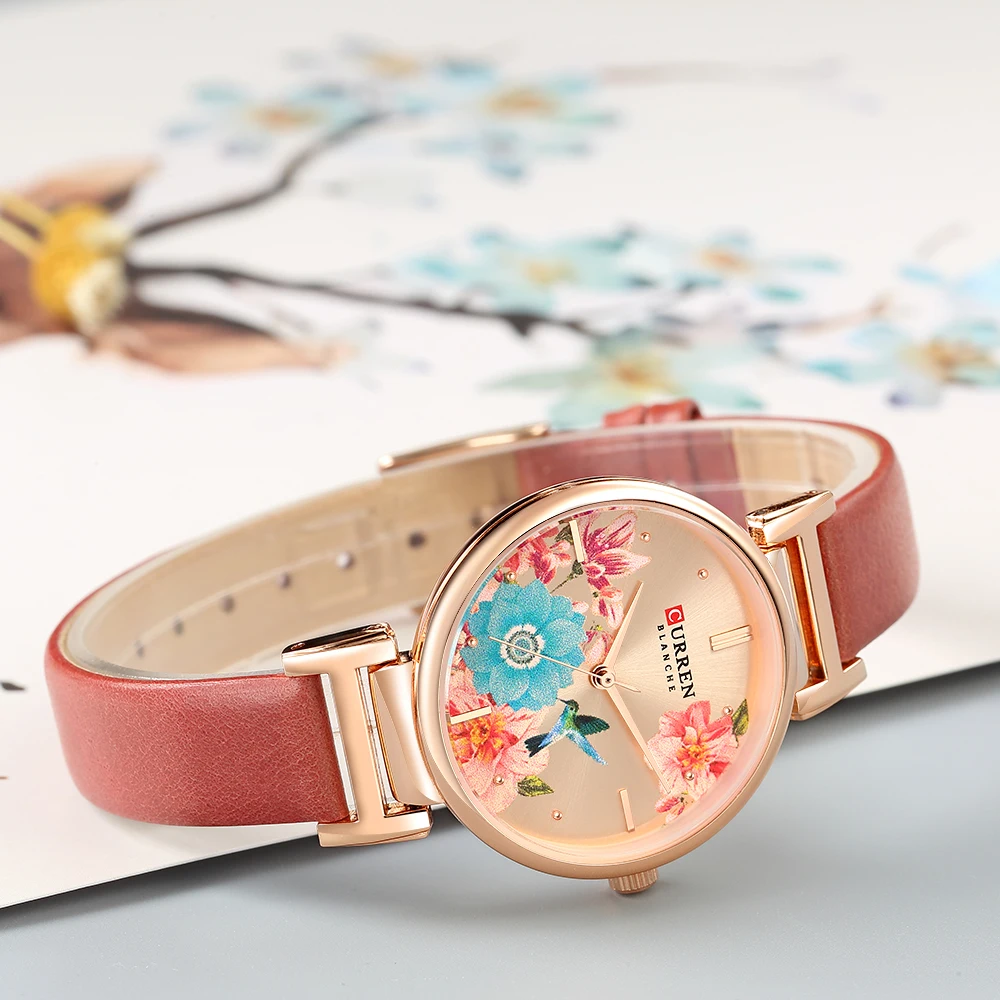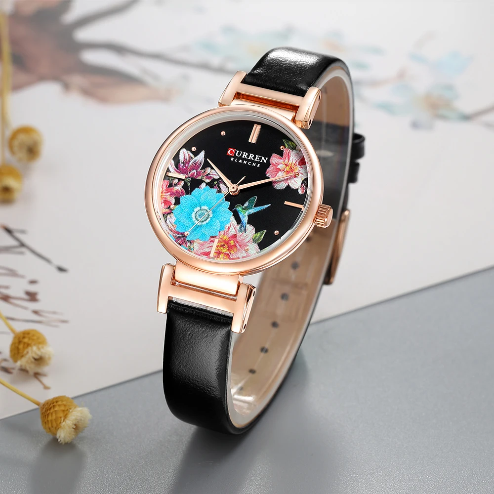 Часы CURREN женские кварцевые, люксовые модные повседневные с кожаным ремешком, с красивым цветком