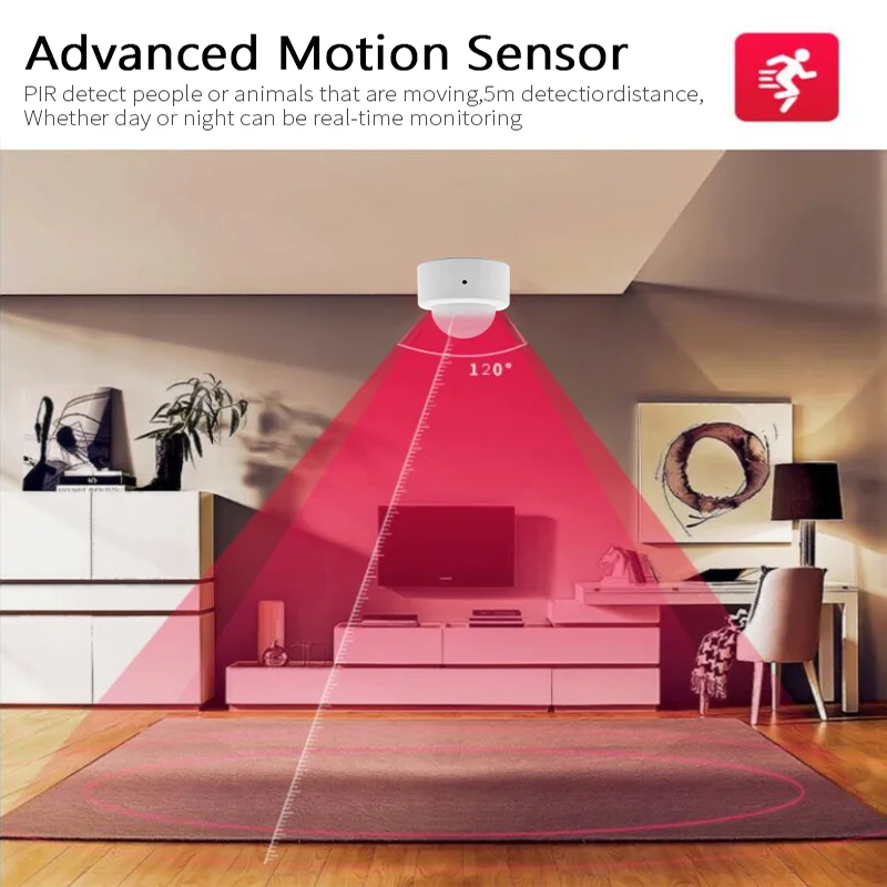【Advanced Motion Sensor】PIR обнаруживает тело человека или животных, которые движутся, угол обнаружения 120 °, расстояние обнаружения 5 м, может достигать мониторинга в реальном времени днем или ночью.