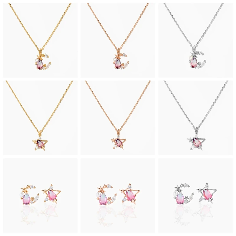 Аксессуар в Корейском стиле Сакура розовый кристалл подвеска Звезда Луна ожерелье для женщин пирсинг для пупка уши гвоздики комплект ювелирных изделий подарок подруге