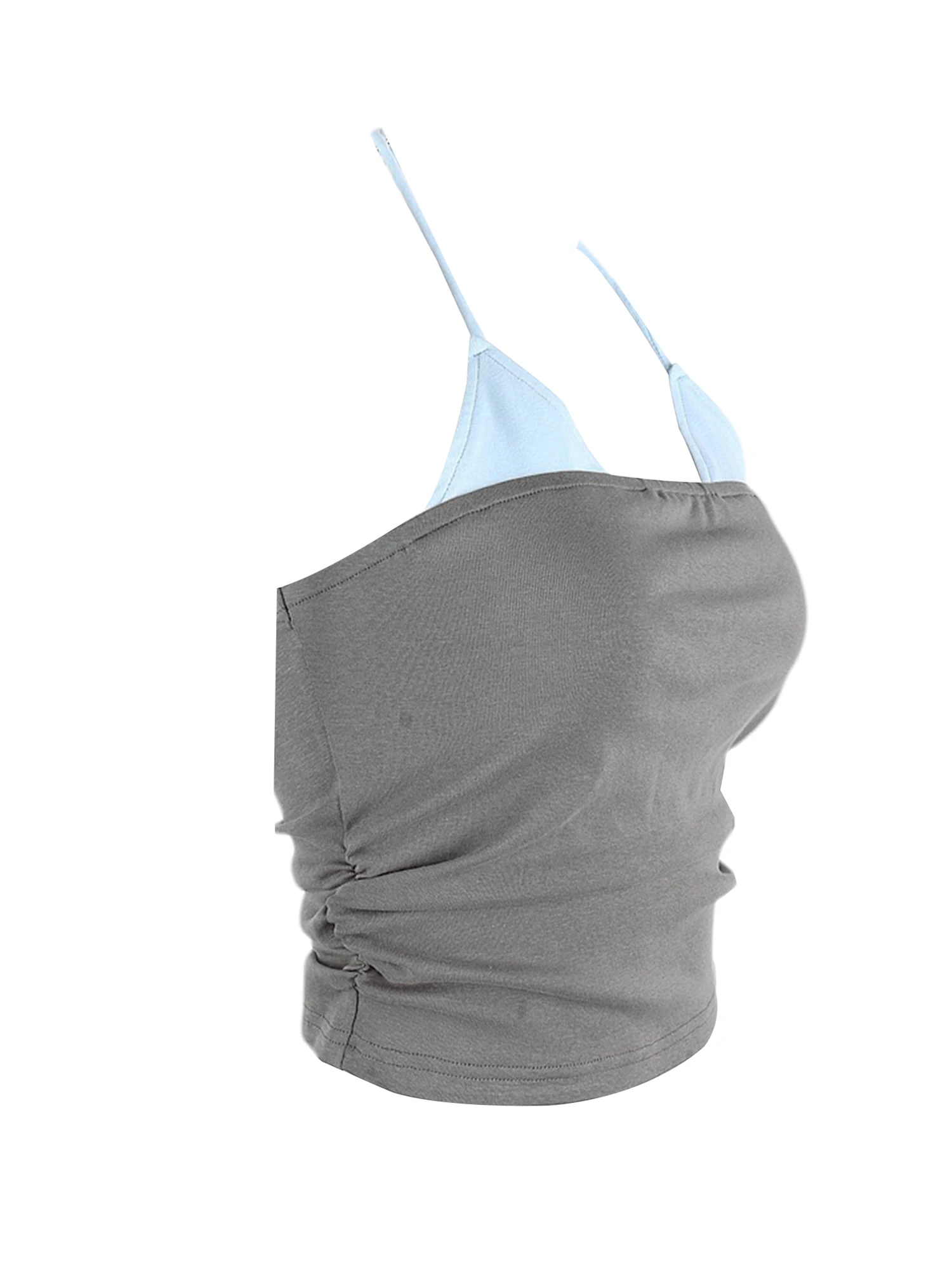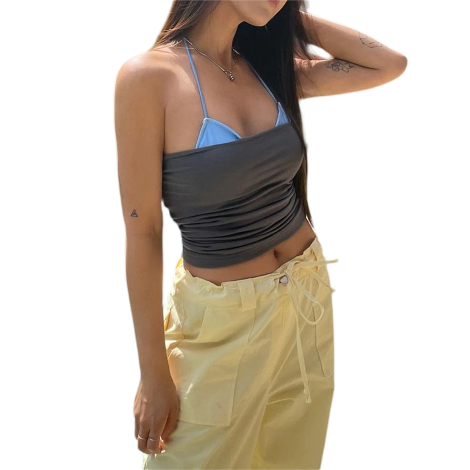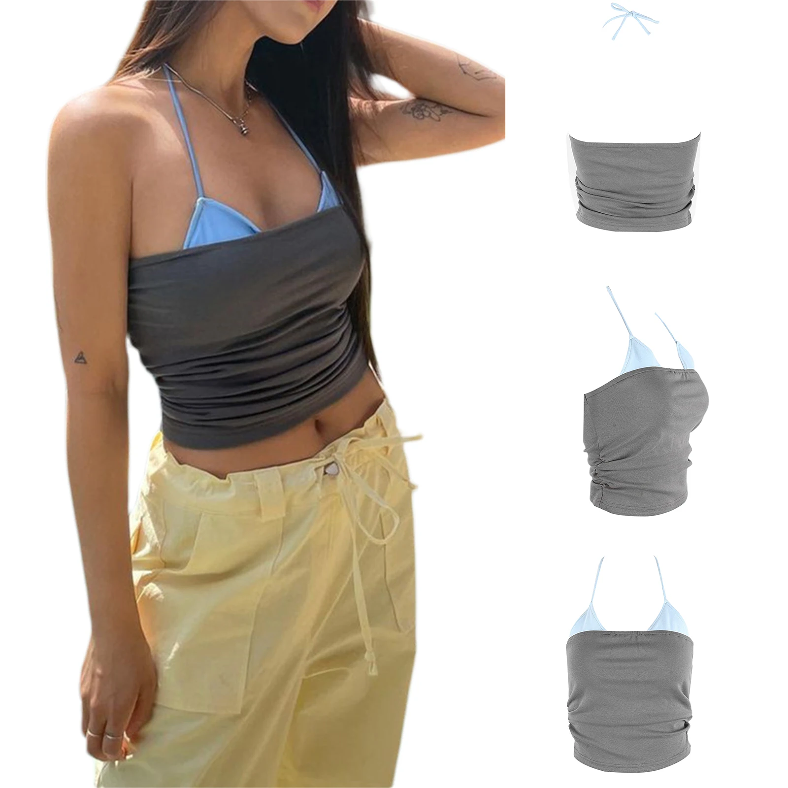 Женский укороченный топ на бретельках, облегающий топ без рукавов с цветными вставками и рюшами, в стиле пэчворк